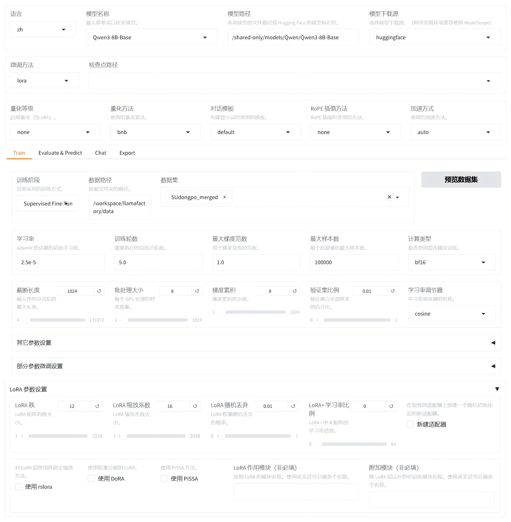 我们选用了LLaMA-Factory微调框架,来构建沉浸式苏东坡角色扮演大模型。