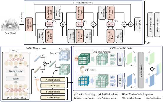 简介: 三维目标检测是自动驾驶感知的重要任务,但在最大化计算效率和捕捉长距离空间依赖关系方面仍存在挑战。Mamba模型凭其线性状态空间设计,能以更低的计算成本捕捉长距离依赖,从而在效率与精度间取得良好平衡。然而,现有方法依赖固定窗口内的轴对齐扫描,不可避免地丢失部分空间信息。为此,本文提出基于Mamba的三维特征编码主干网络WinMamba。首先,为增强主干网络的多尺度表征能力,引入了一个窗口尺度自适应模块,在采样过程中对不同分辨率下的体素特征进行补偿。其次,为了在线性状态空间中获取丰富的上下文线索,引入了可学习的位置编码和窗口移位策略。在KITTI和Waymo数据集上的实验表明提出的方法显著优于基线方法。