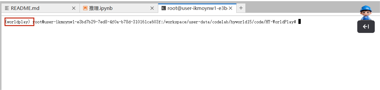 进入项目页面后,打开 code 文件夹下的推理.ipynb 文件。在终端中激活所需环境,执行命令 conda activate worldplay,出现下图即成功激活。