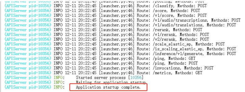 模型与数据集已准备好。先在终端启动 Meta-Llama-3-8B-Instruct(BF16) 服务;当日志出现 “Application startup complete.” 即表示服务启动完成。