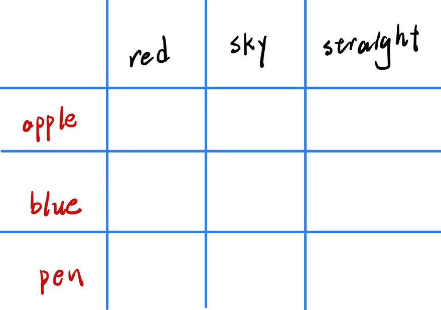 现在 A 序列有 10 个单词,B 有 20 个,要比较 A 与 B 两两单词间的相似度,序列内的单词不比较,可知道结果有 200 个,前面知道相似度就是内积结果,这 200 个果存储在 10×20 的表格中,表格的第一维度 10 按顺序对应 A 序列的元素,第二维度按顺序对应 B 序列的元素,这样我们就实现序列单词元素两两相似度的存储。