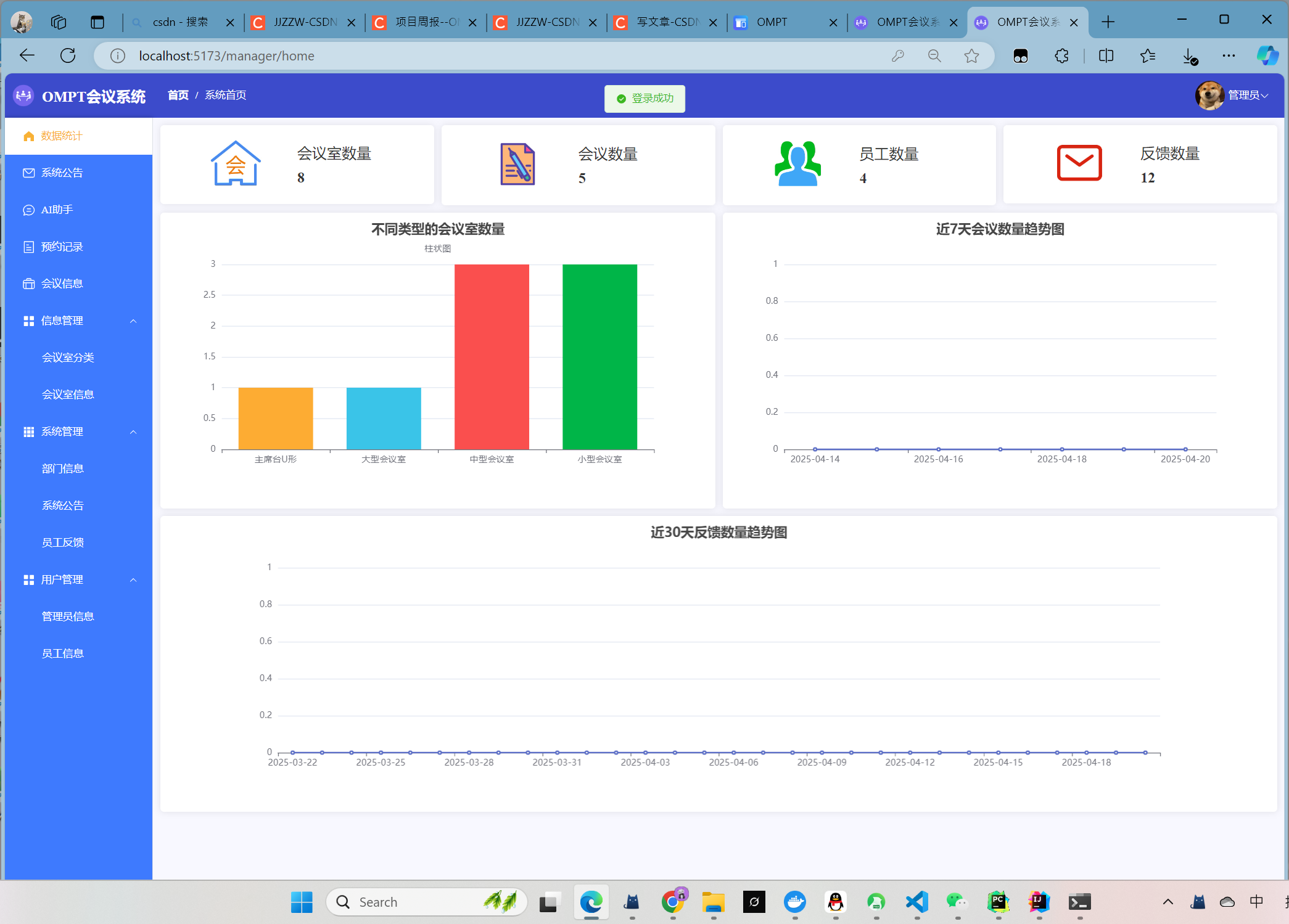焦于原型设计和开发环境搭建,完成了技术学习和初步实现。我使用墨刀优化了项目原型,完善了会议管理(创建、编辑、通知)、日历提醒和实时问答模块的UI交互,更新了7个核心页面,输出了15页交互流程图和8个高保真页面(包括用户仪表板、会议详情页),生成前端页面设计文档(附件:前端页面设计.pdf,约20页)。在前端开发上,我深入学习了VUE,搭建了前端项目环境,基于Element Plus组件库实现了3个页面(登录、会议列表、日历),编写约200行JavaScript代码,支持动态渲染会议数据。