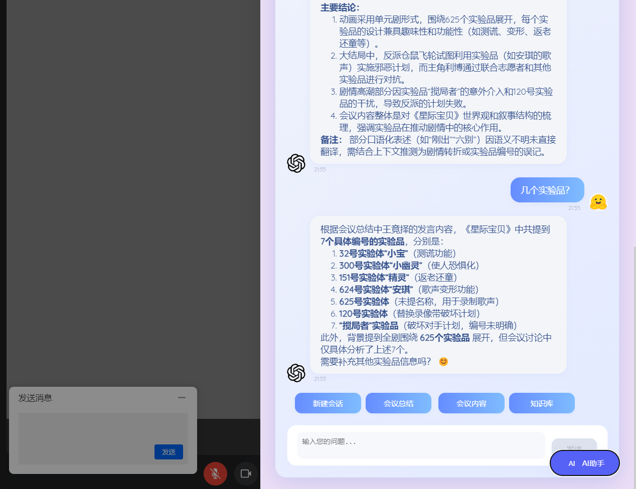 缺少对 summary 消息的显式标记:没给生成的会议总结消息打任何 flag,无法在同步逻辑中区分它与普通的 AI 回复。