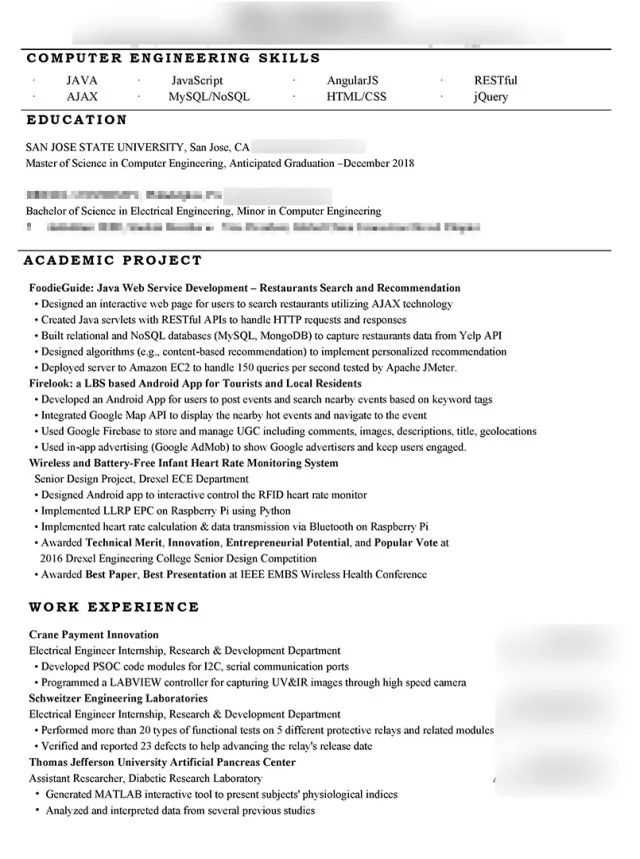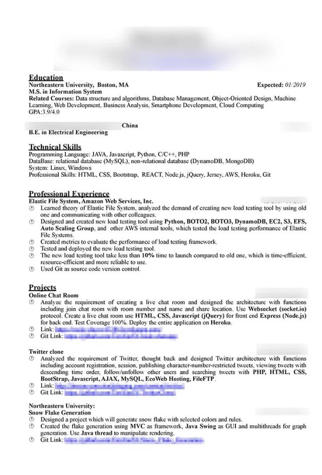 以下是今年拿到Linkedin和Facebook实习offer的Northeastern和SJSU的两位同学的简历。