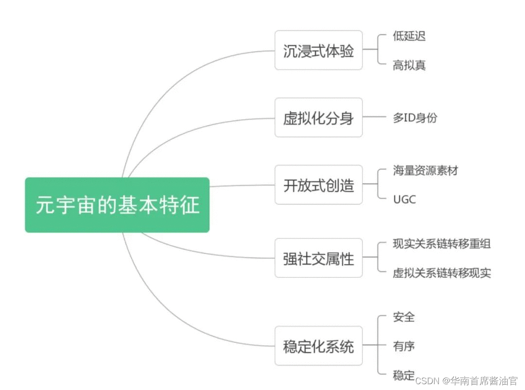 我们目前经常用来做教科书式回答的是一个项目或产品必须满足元宇宙八大要素:身份、朋友、沉浸感、低延迟、多元化、随时随地、文明和经济系统就是元宇宙。