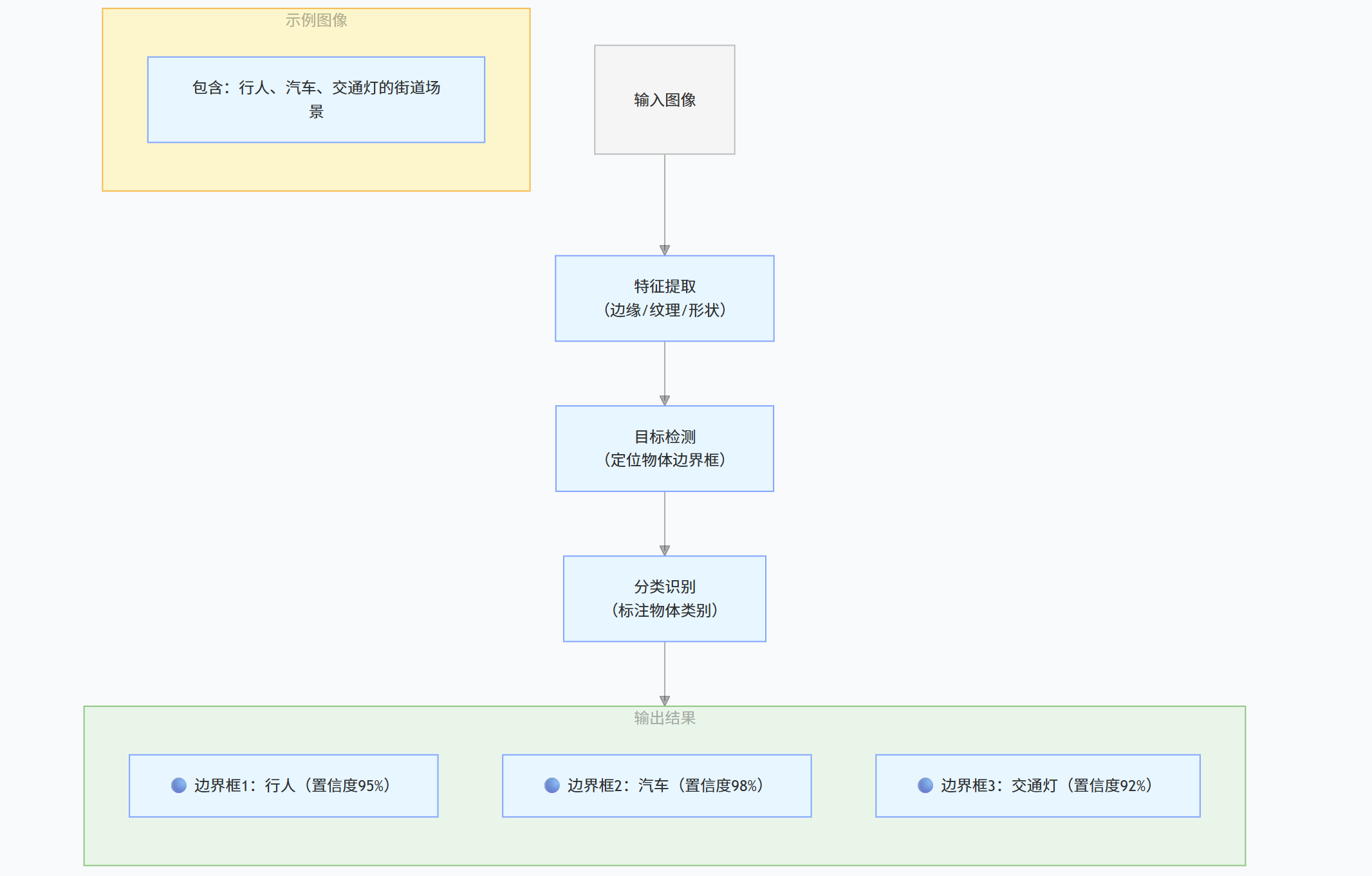 图解:展示了目标检测如何在图像中识别出多个物体。