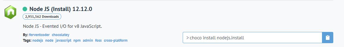 比如安装node js,在powershell下输入 choco install nodejs.install