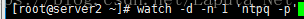 我建议大家在打开NTP服务器后就可以运行ntpq命令来监测服务器的运行.这里我们可以使用watch命令来查看一段时间内服务器各项数值的变化