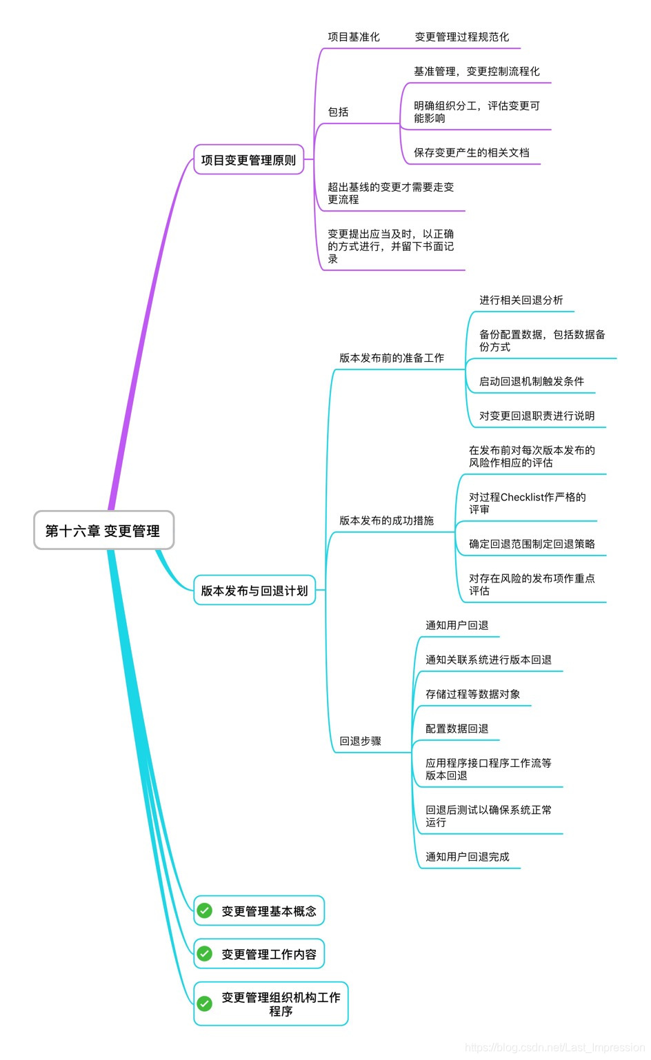 项目变更管理的原则,变更管理的基本概念,变更管理的工作内容,变更管理的组织内容和工作程序以上这些内容构成了变更管理章节。