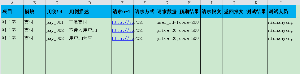 常用的接口测试用例模板如下: