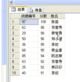Select top 10 a.成绩编号, a.分数, b.姓名