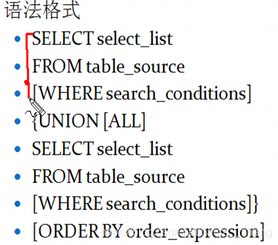 union:连接的两个结果集必须在目标列表中有相同数目的表达式,且数据内容尽量保持一致。