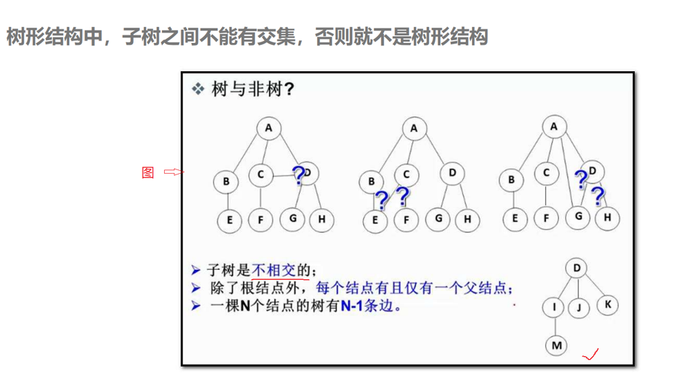 2.除了根结点以外,其他每个结点都有且只有一个父结点