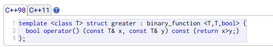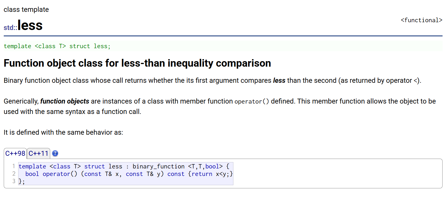 也就是less是一个类名,它重载了一个operator(),注意返回的是x<y (第一个小于第二个就返true)