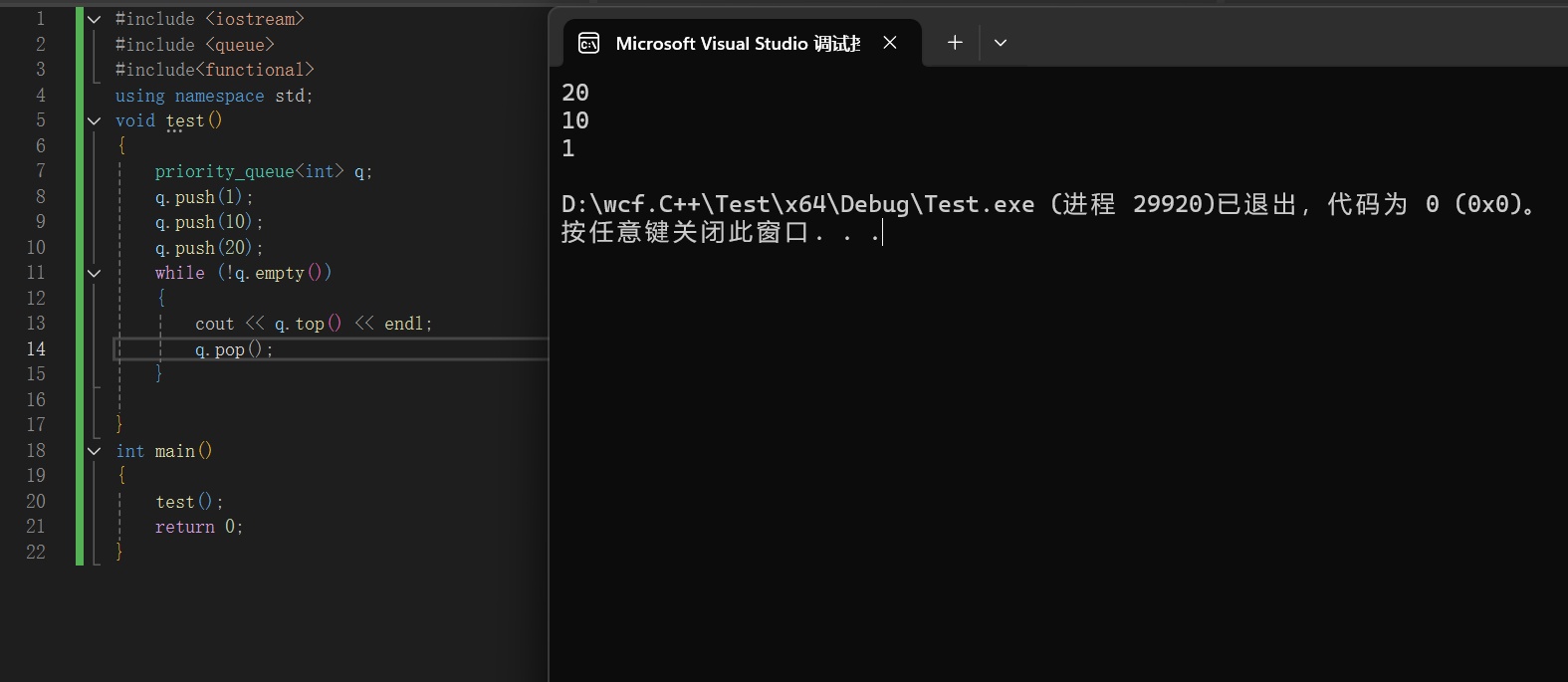 标准容器 vector 和 deque 完全满足这些要求。默认情况下,如果未显式指定底层容器,优先队列将使用 vector 作为其底层实现。