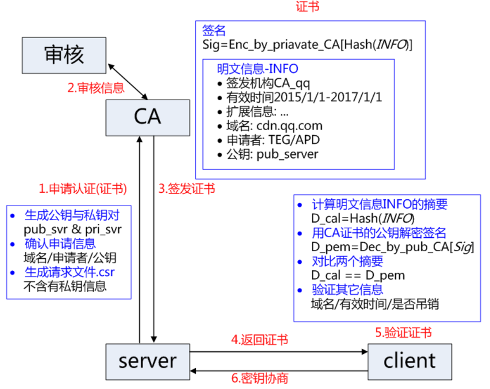 首先:服务器向CA机构提交信息(包括公钥信息,私钥自己保存好)