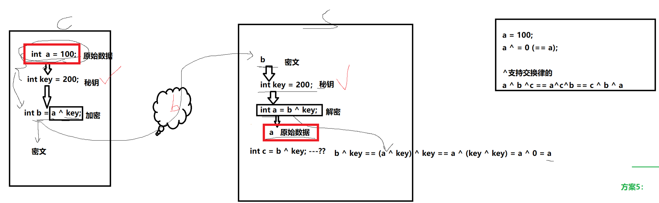 就比如之前提到的,按位异或加密,密钥是同一个key