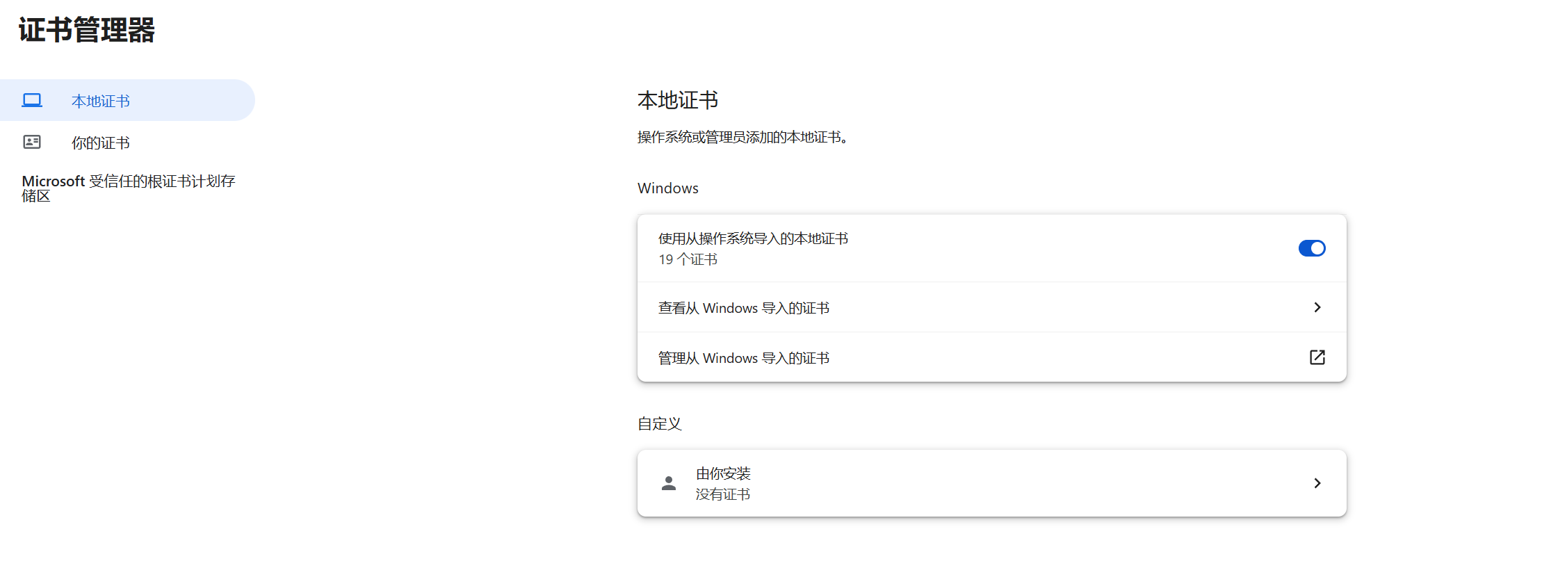 设置----->搜索证书------->证书管理