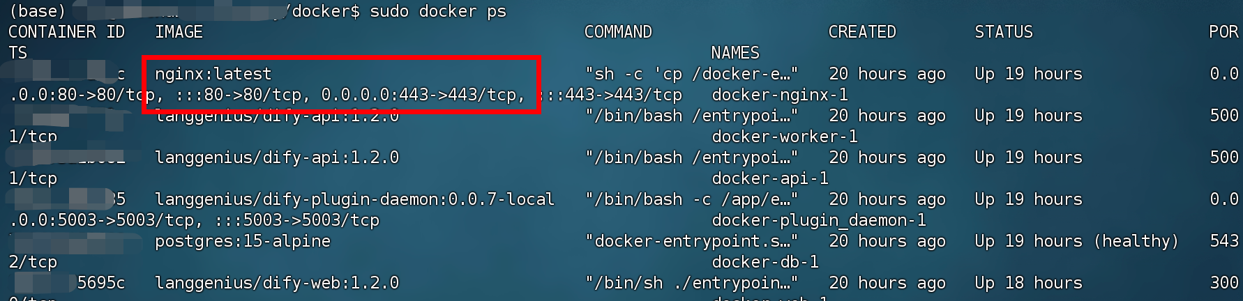 sudo docker ps