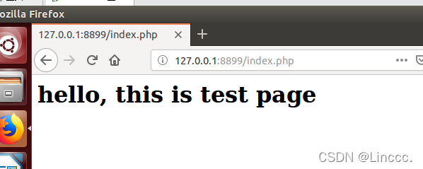 浏览器中打开http://127.0.0.1:8899/index.php会发现404错误,这是因为我们还没有添加index.php这个文件,因此切换到上页配置的root所对应的目录,创建index.php文件并在index.php中写入