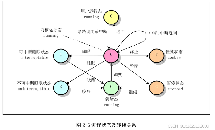 linux中的状态,运行态,睡眠态,僵尸,暂停态。