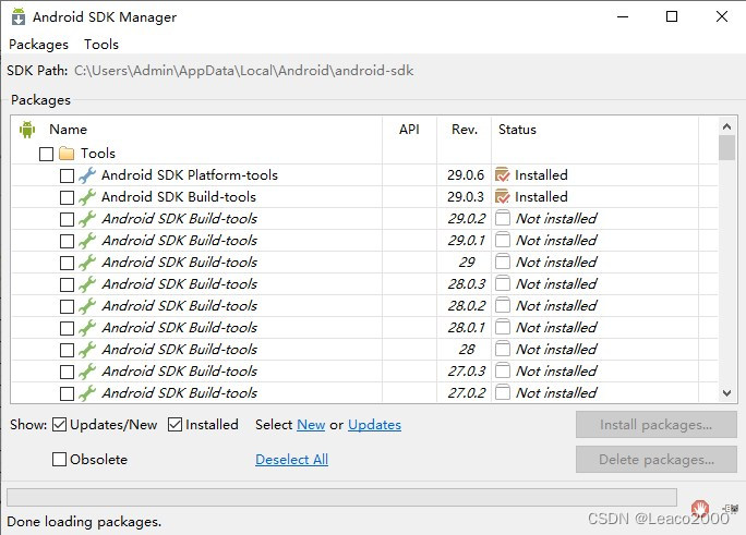 下载后进行默认安装,完成后进入目录打开SDK Manager.exe