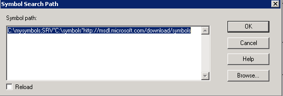 Symbol search path is: C:\mysymbols;SRV*C:\symbols*http://msdl.microsoft.com/download/symbols