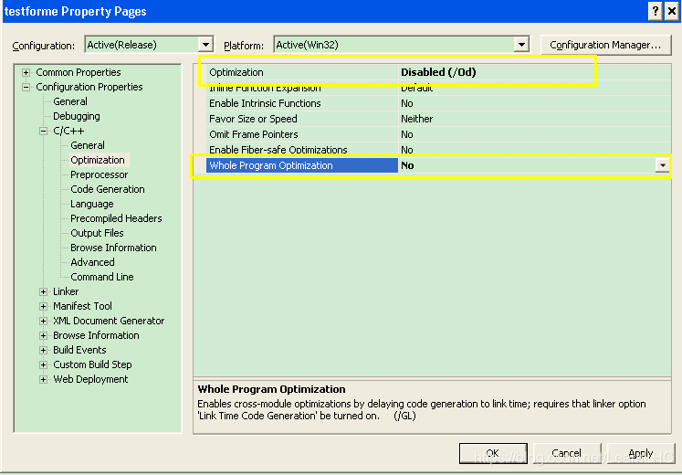所以在调试优化后的程序要注意这些可能的变化,当然如果你想让Release的程序不进行优化,可以在Visual Studio中关闭这个选项,如下图: