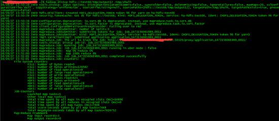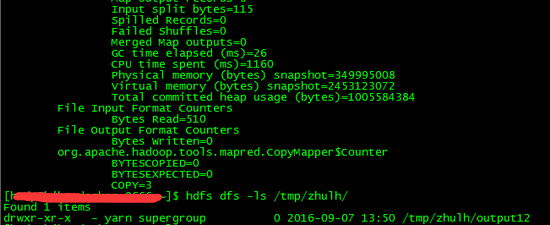 通过distcp将/tmp/output12上的数据调用mapreduce迁移至/tmp/zhulh目录下,原先/tmp/output12上的数据还是有存在的,但是它的块就发生了变化。