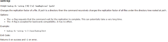 上面的命令是将ns1下的/tmp/test.db副本数降至2个,然后又将它升至3个副本。具体的hdfs dfs -setrep命令如下图: