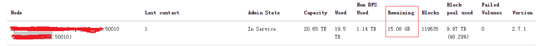 再者查看namenode的页面,看到有好多datanode的节点的Remaining快要趋于0B了,这个时候就很容易出现上面的报错。