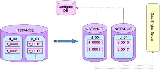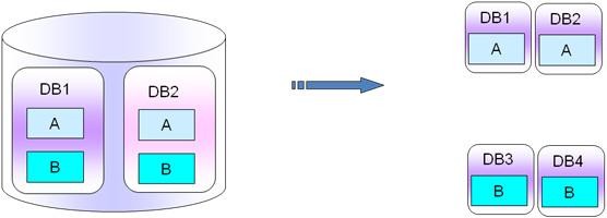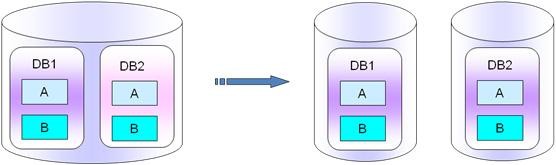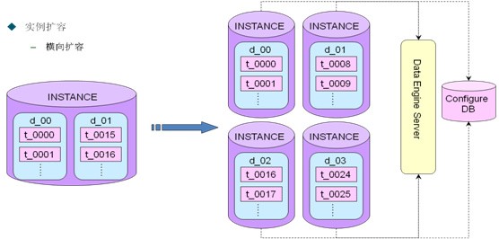 纵向扩容:一个实例拆分成多个实例,纵向拆分比较简单,修改的东西比较少,拆分的时候要通知到Configure DB或者DES,以免拆分之后查询不到数据或者数据录入不到新的db上面,如下图所示: