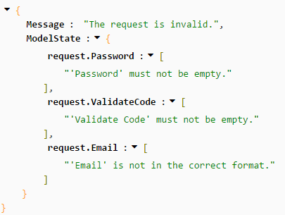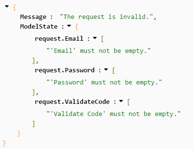| 1 2 3 4 5 6 7 8 9 10 11 12 13 14 15 16 17 18 19 20 | public class CustomerValidateRequest : IValidatableObject { private readonly IValidator _validator; public CustomerValidateRequest() { _validator = new CustomerValidateRequestValidator(); } public string Email { get; set; } public string Password { get; set; } public string ValidateCode { get; set; } public IEnumerable<ValidationResult> Validate(ValidationContext validationContext) { return _validator.Validate(this).ToValidationResult(); } } |