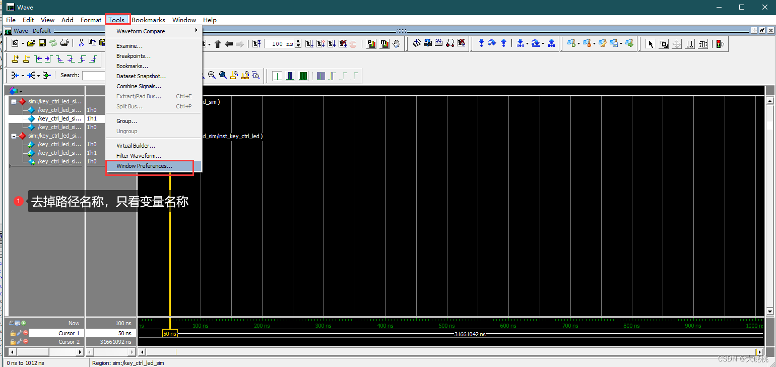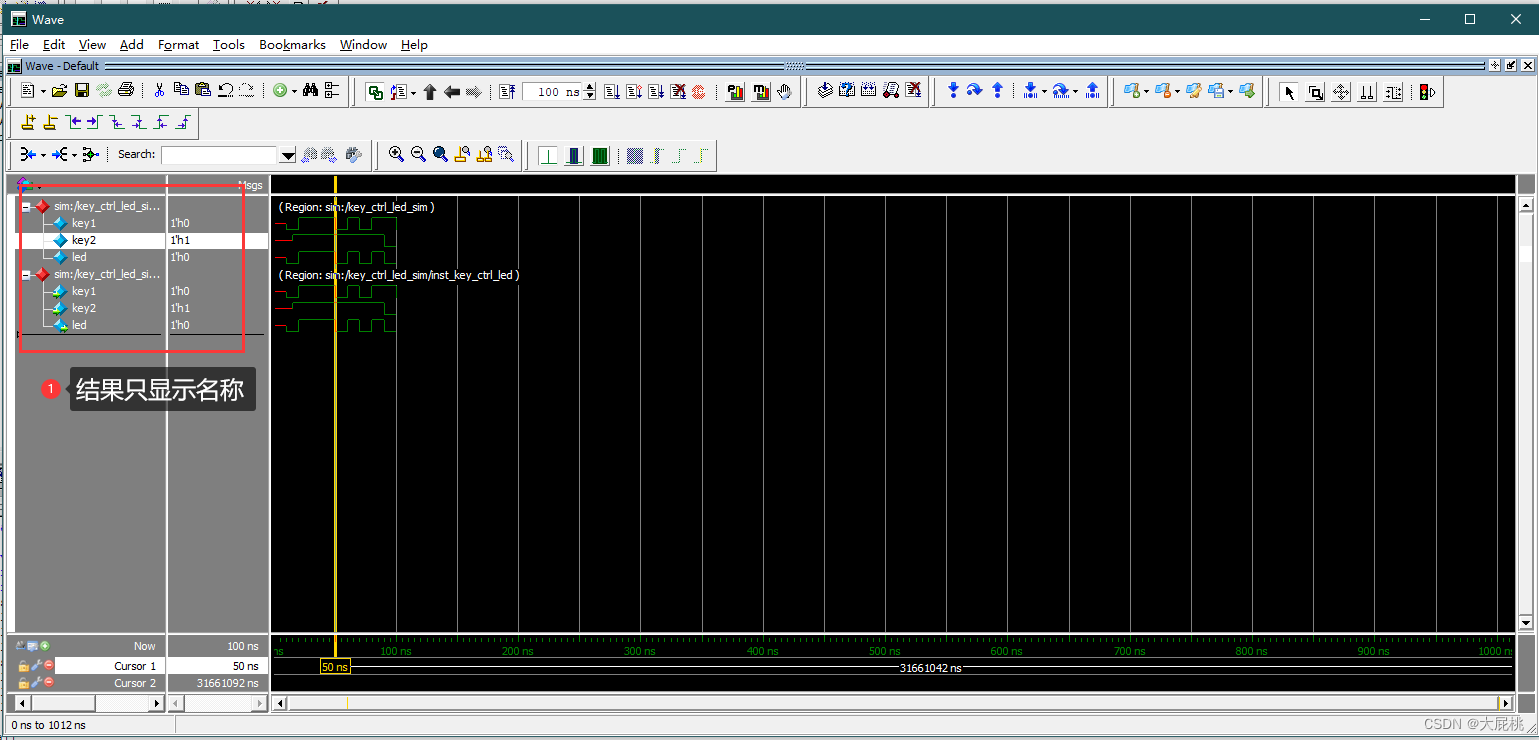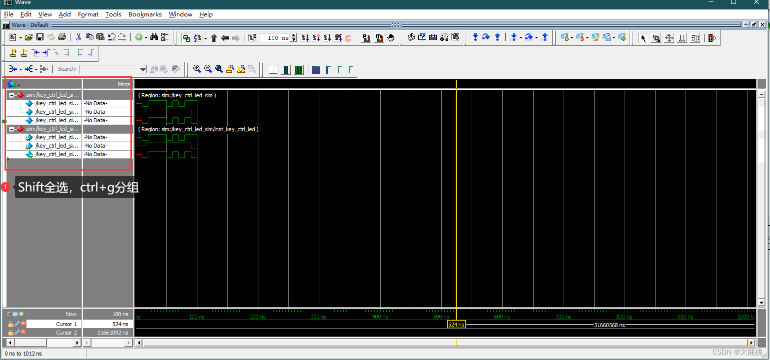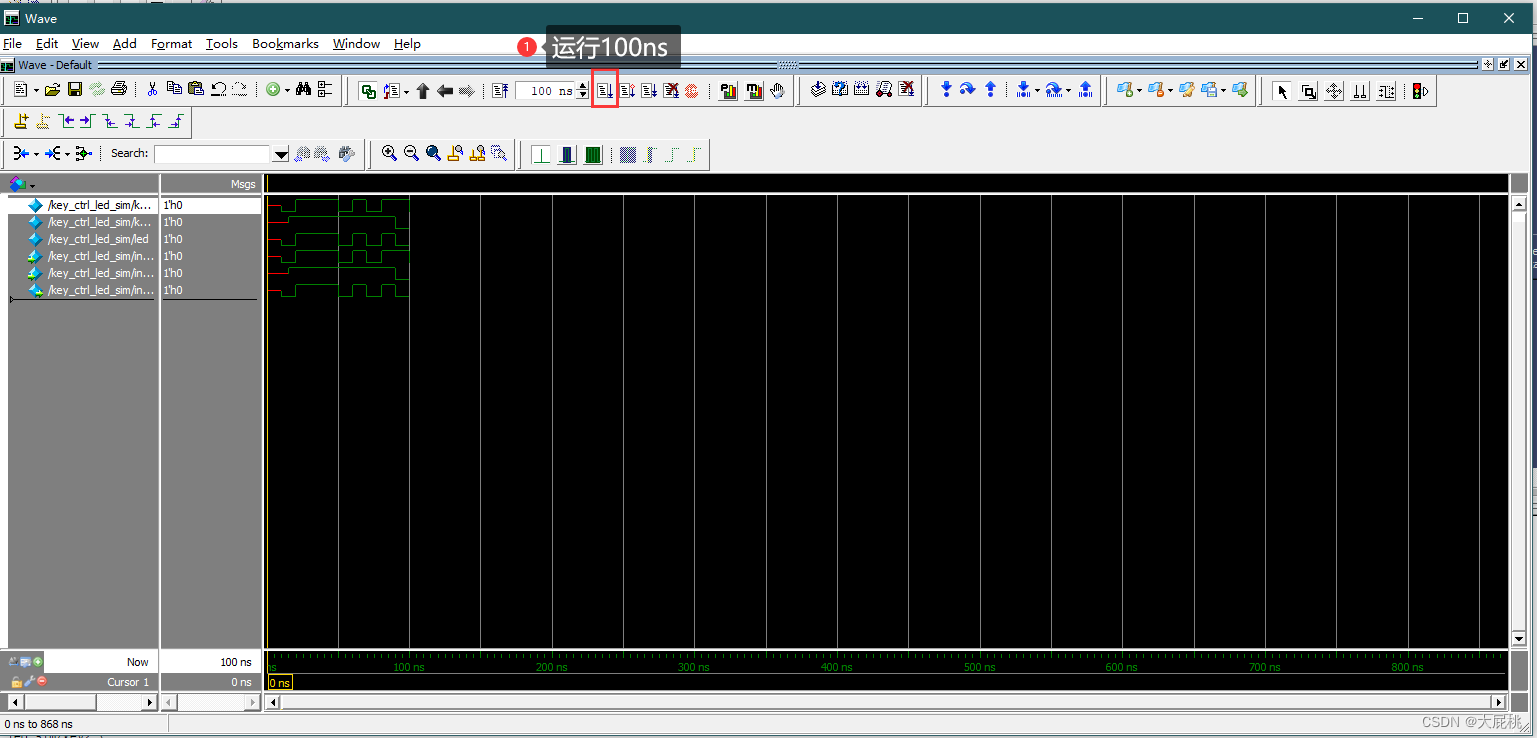 第三步、分别将object中的端口添加到波形窗口去观察波形