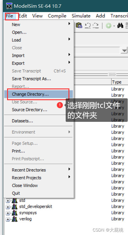 第三步、modelsim软件中设置新建.tcl文件的路径,选择存放.tcl文件的文件夹