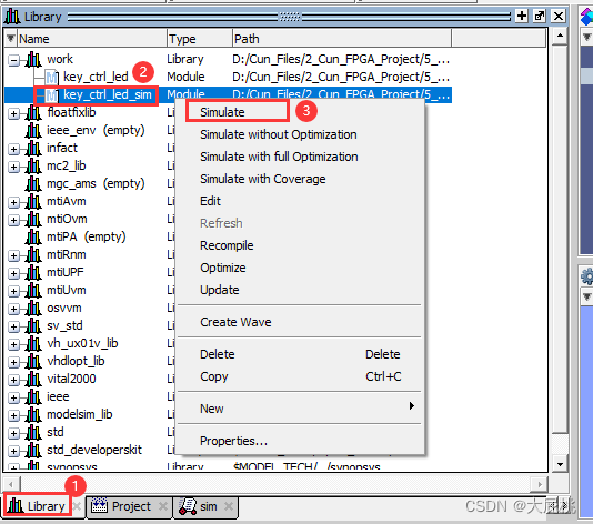 第二步、右键写好的Testbench文件,右键选择第一个sim