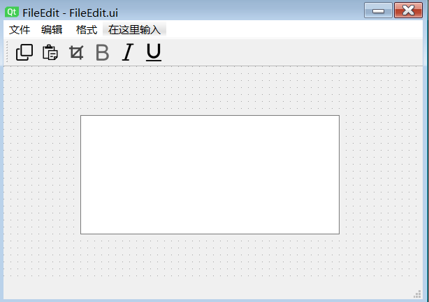 需要创建一个GUI项目,并在UI设计师里面,将菜单栏和任务栏设计好。由于VS+QT没有“go to slots”,所以需要手动添加槽函数。界面设计效果如下图所示:(中间为textEdit)