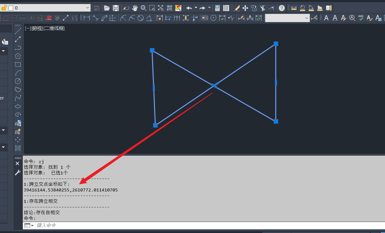 4、判断完全部线段组合后,得出结论,有一对线段存在相交,则该多段线存在自相交;反之,所有线段对之间均不存在相交情况,则多段线不存在自相交情况。