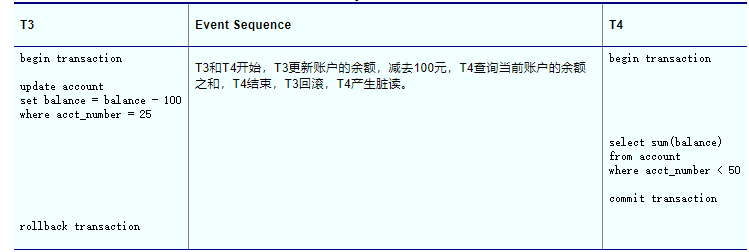 如果事务T4在T3更新之后回滚之前查询,那么T4就会产生脏读。