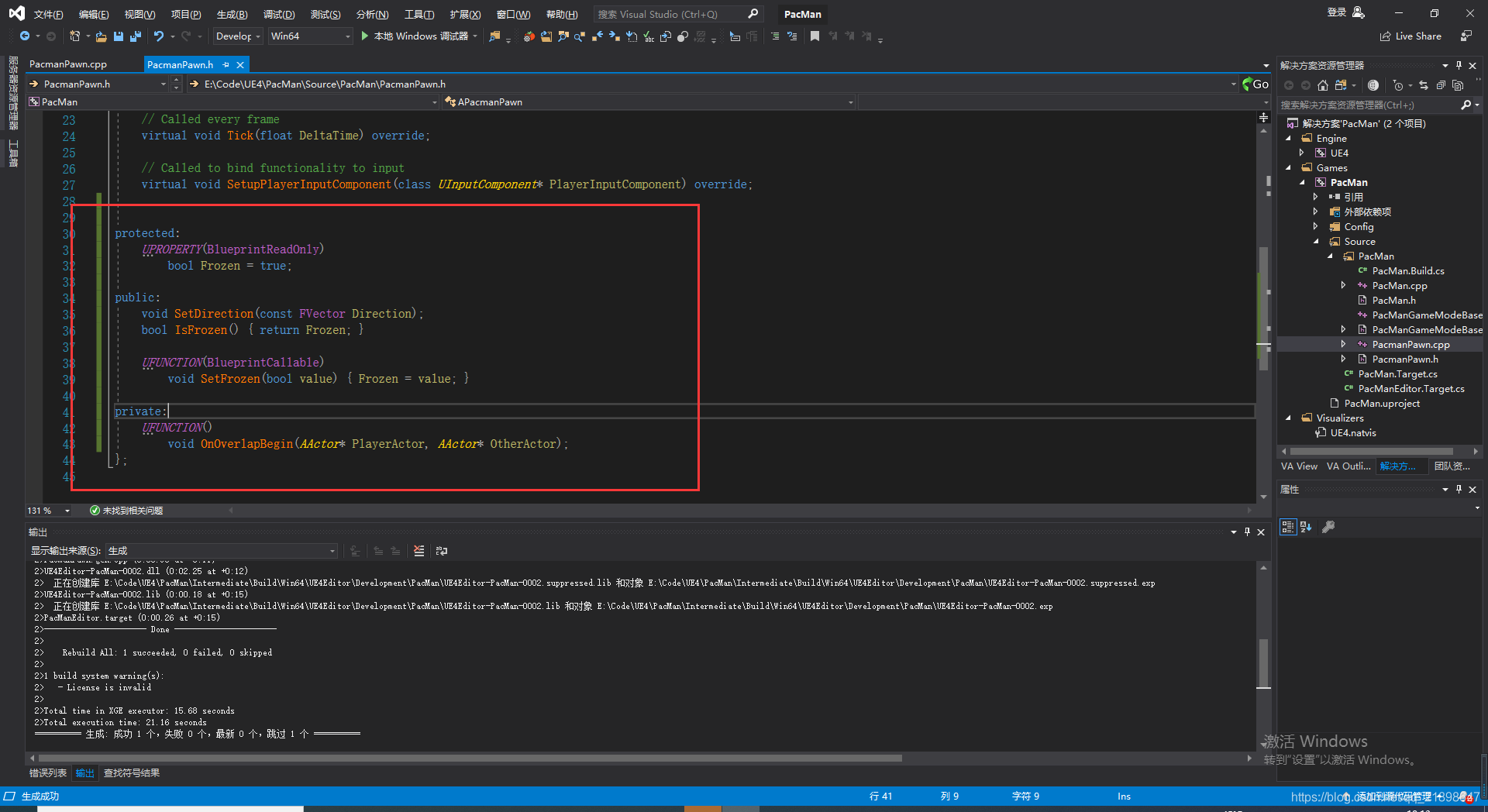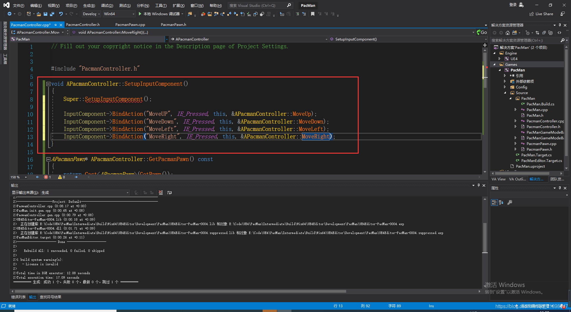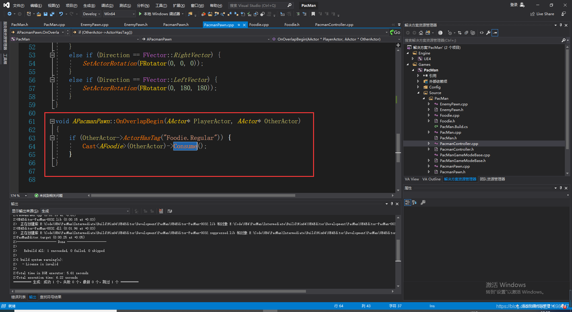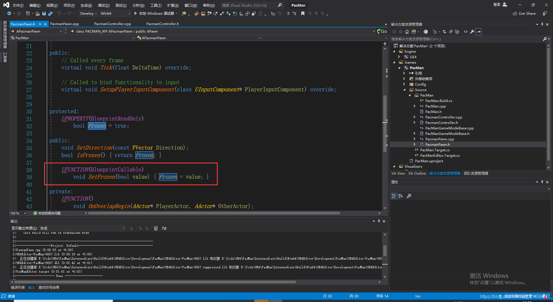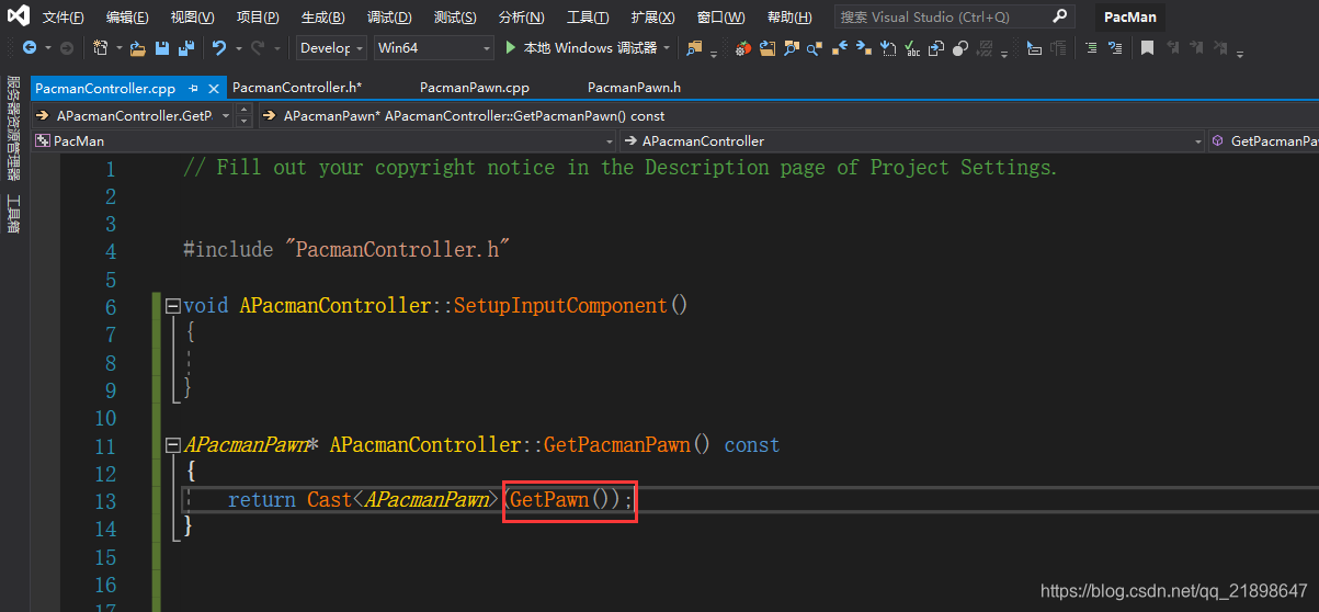 设置完以上后,在PacmanController.cpp中GetPawn就可以得到场景中的Pawn