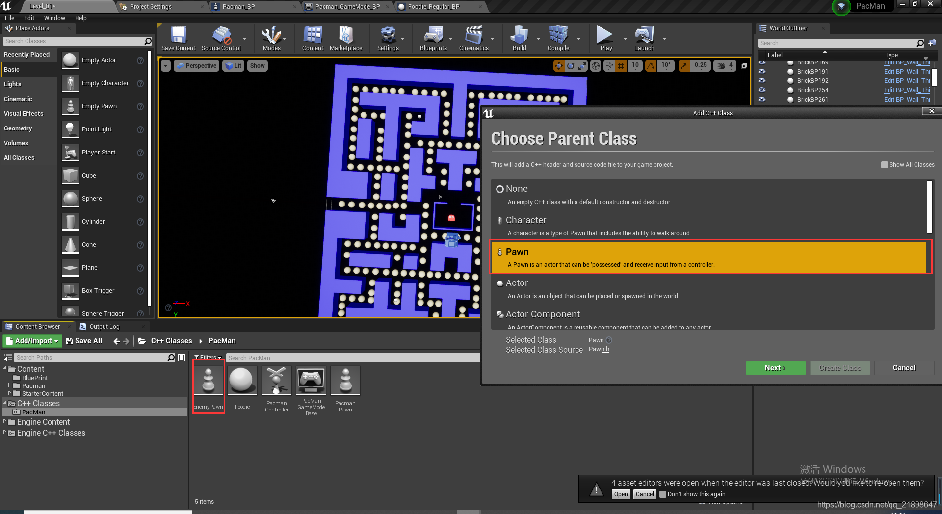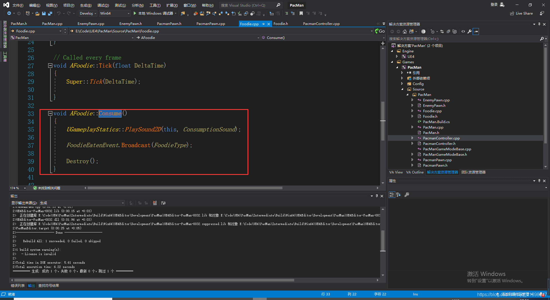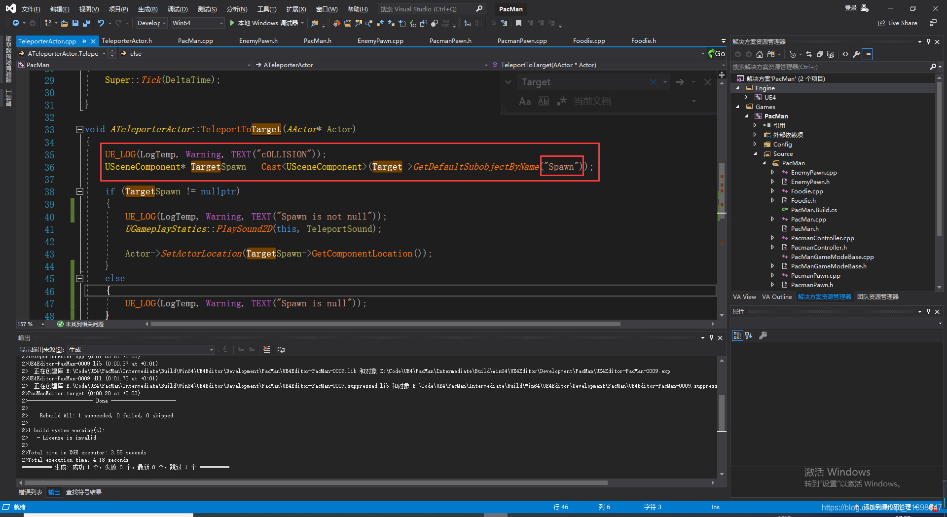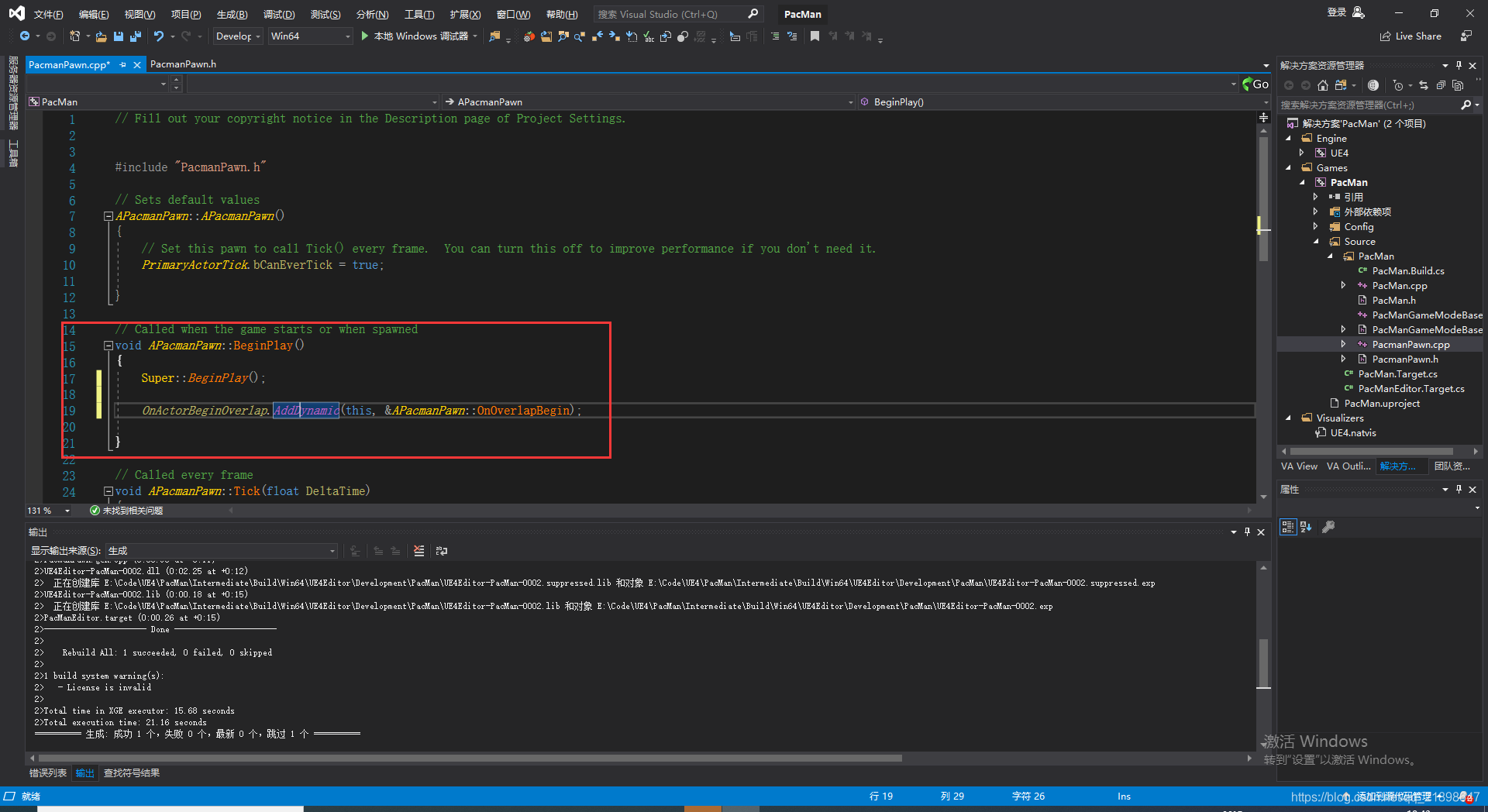 设置完以上后,在PacmanController.cpp中GetPawn就可以得到场景中的Pawn