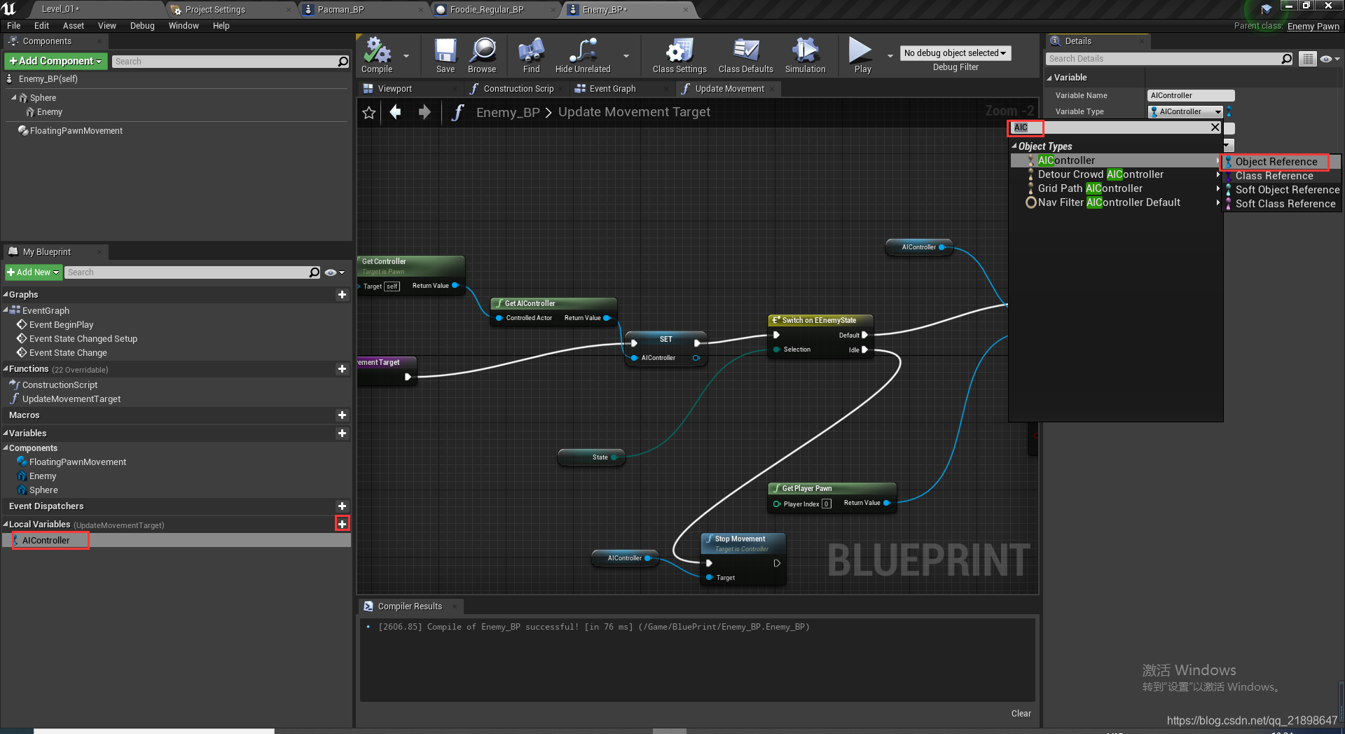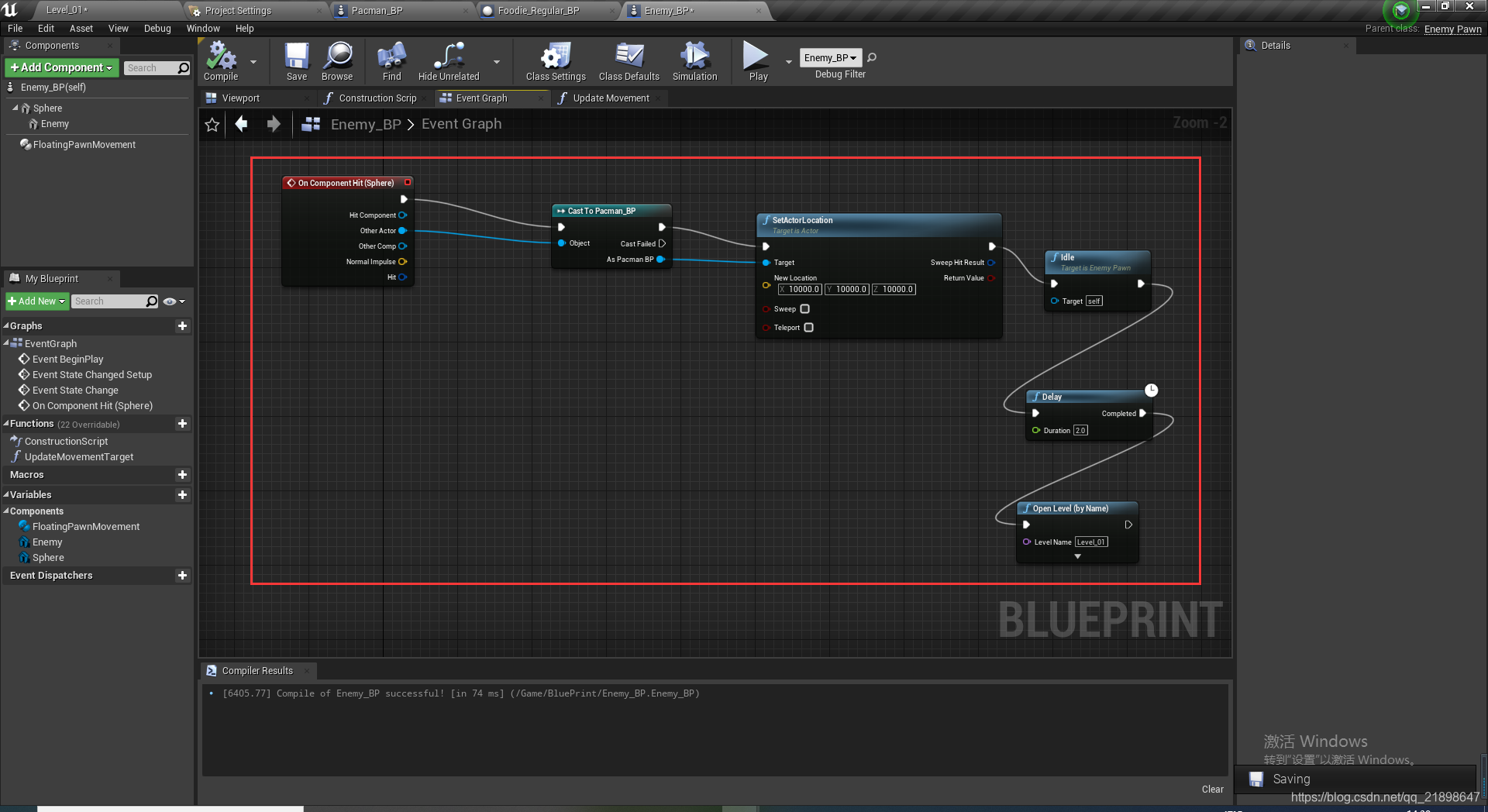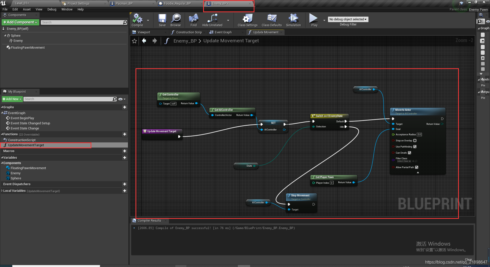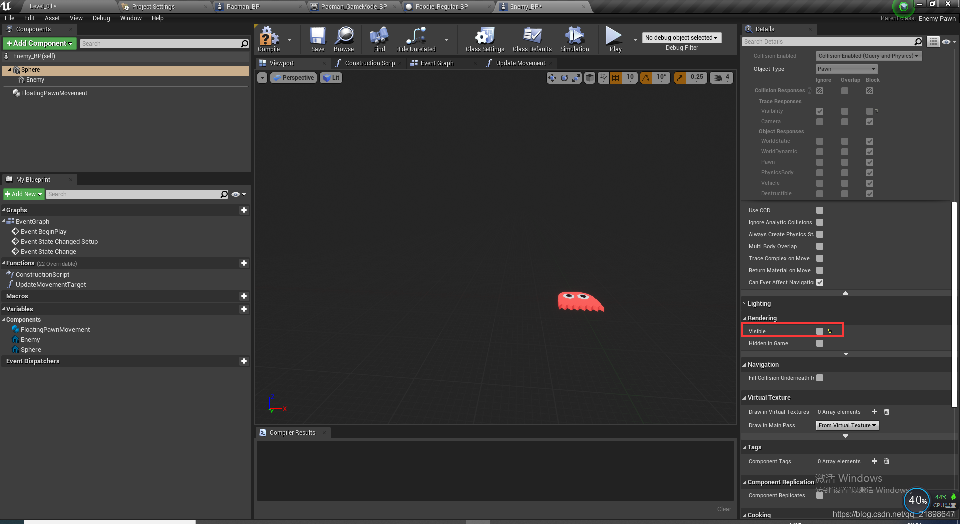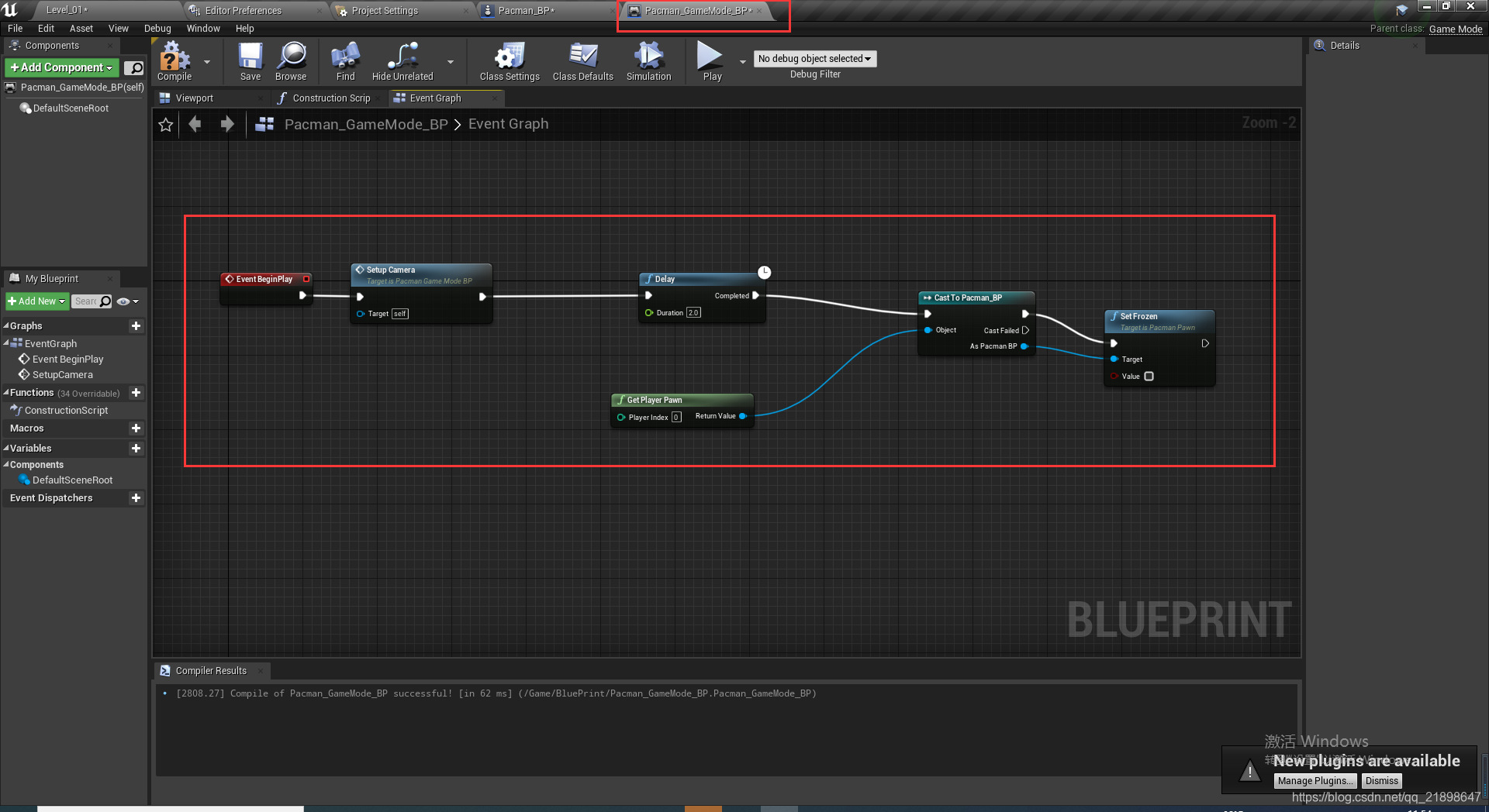 设置完以上后,在PacmanController.cpp中GetPawn就可以得到场景中的Pawn