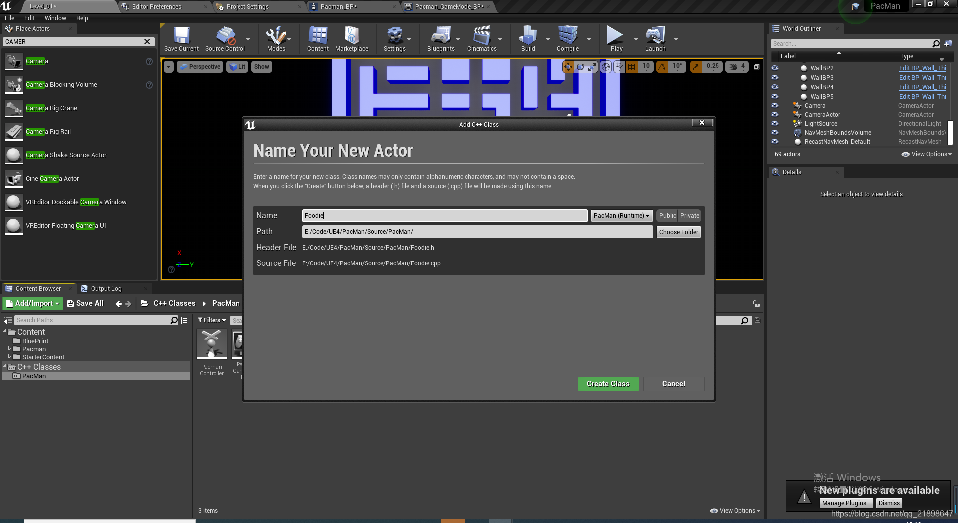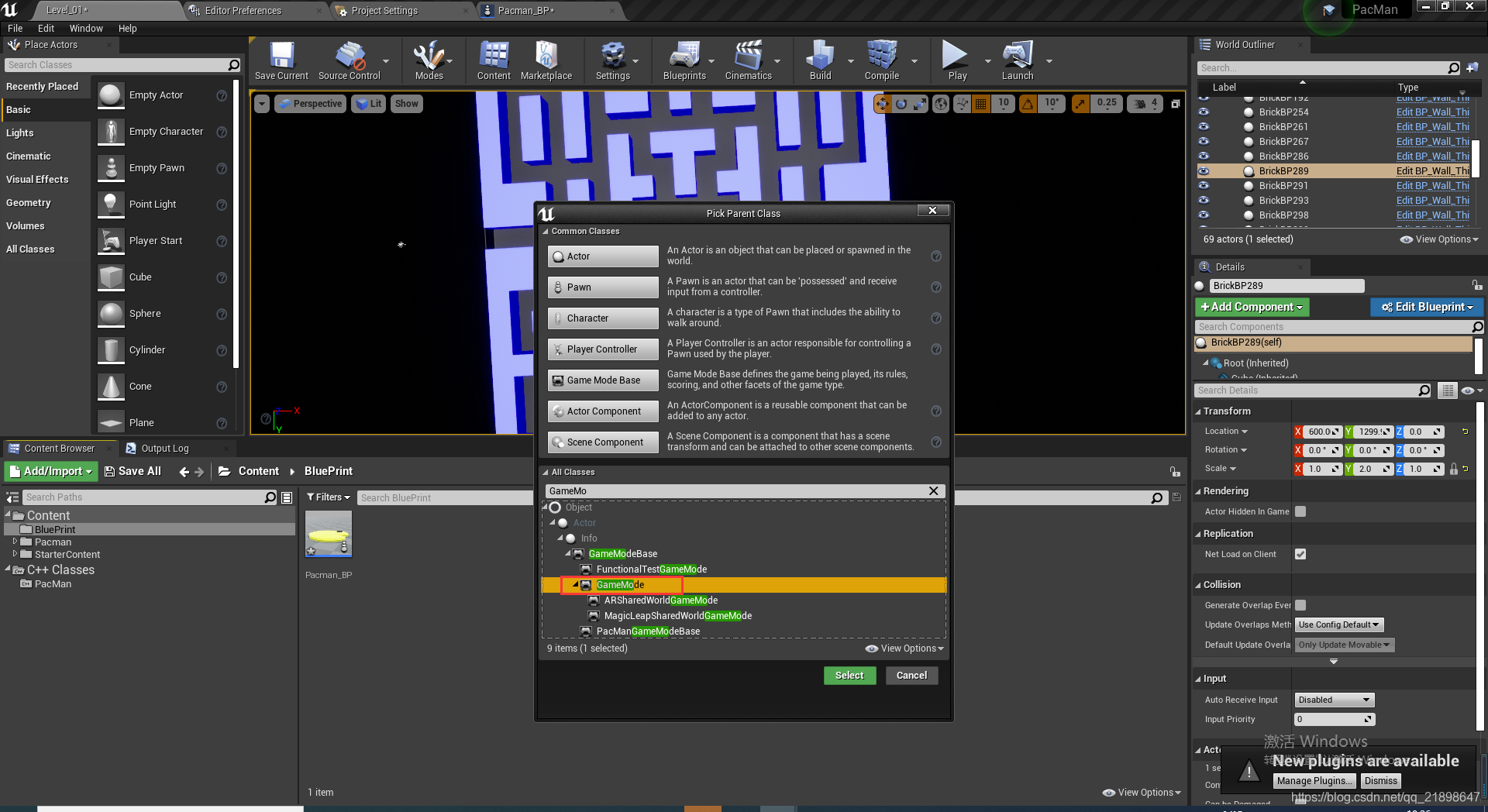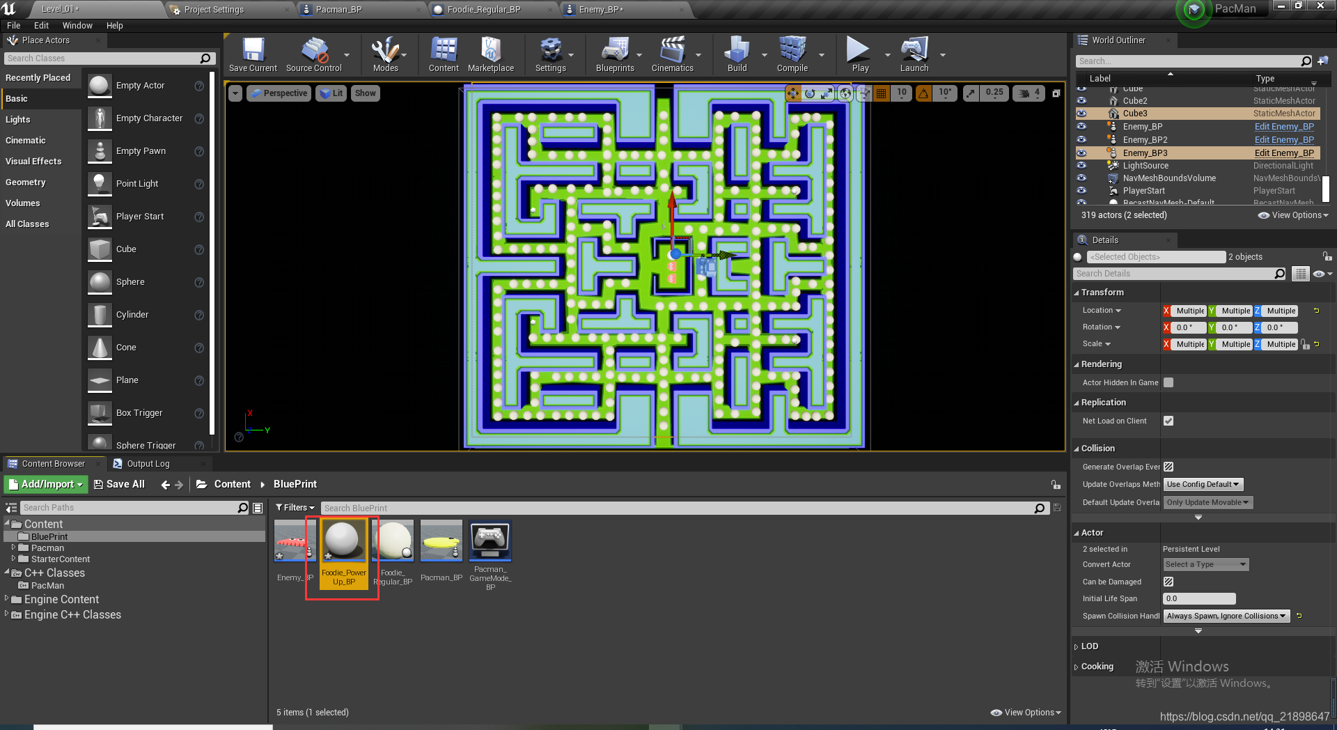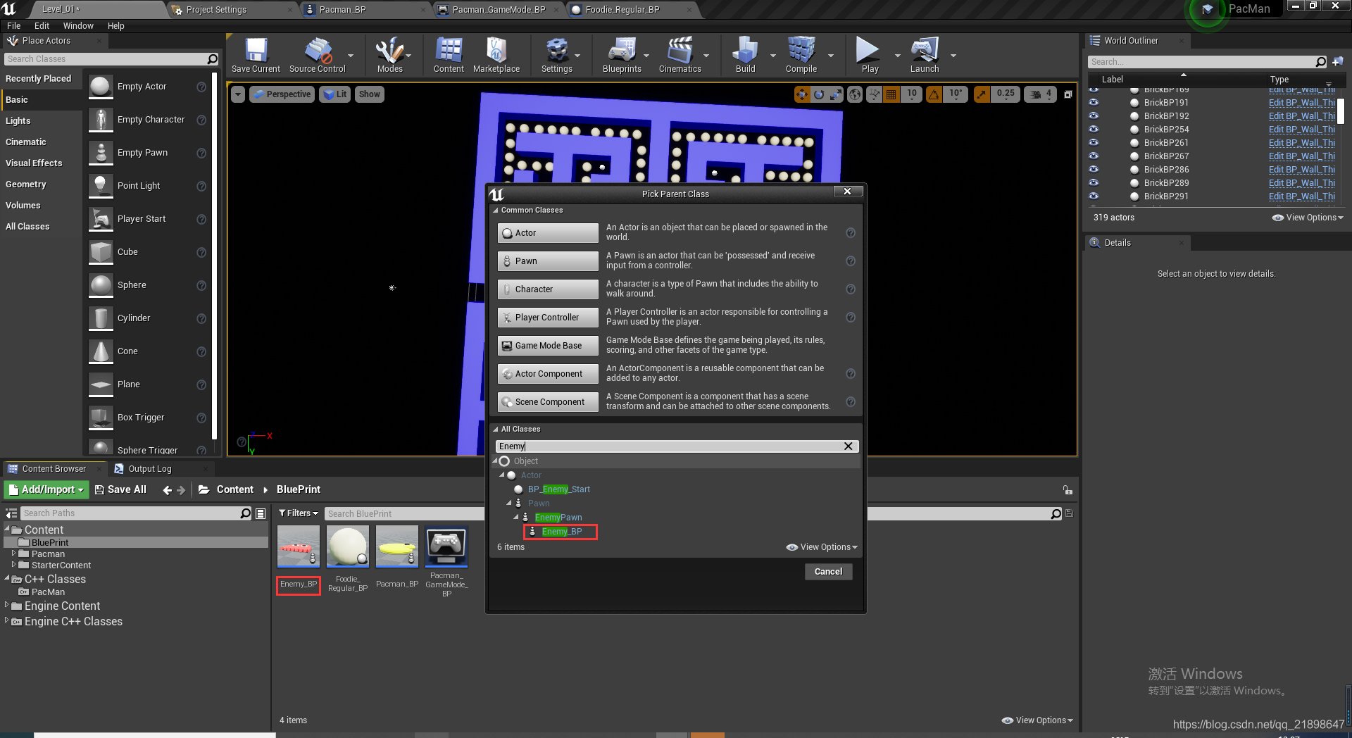 Player Controller Class设置为PacmanController,这样在C++类中就能获取到场景中Actor