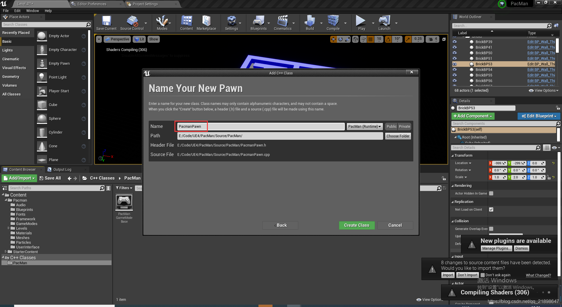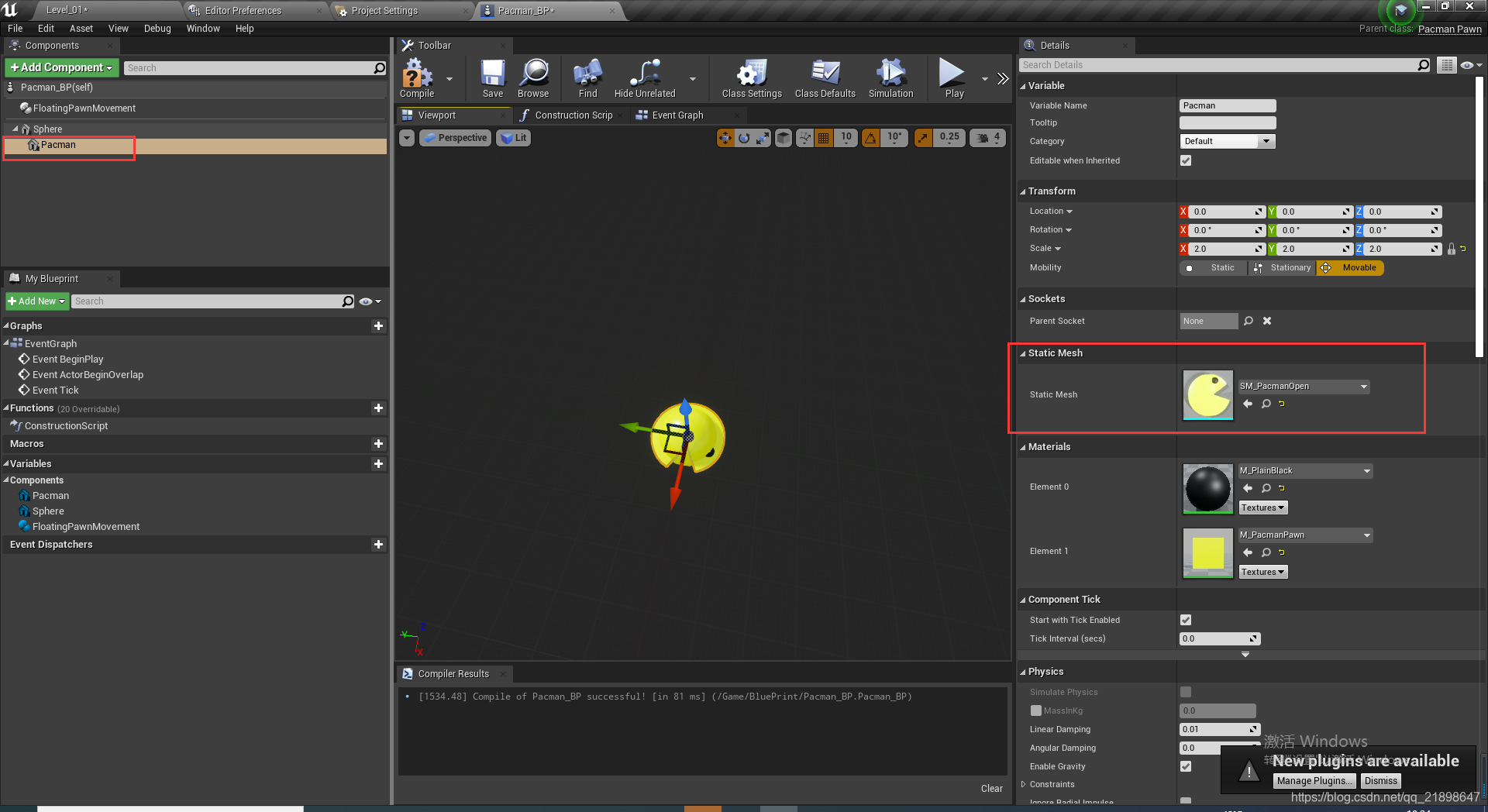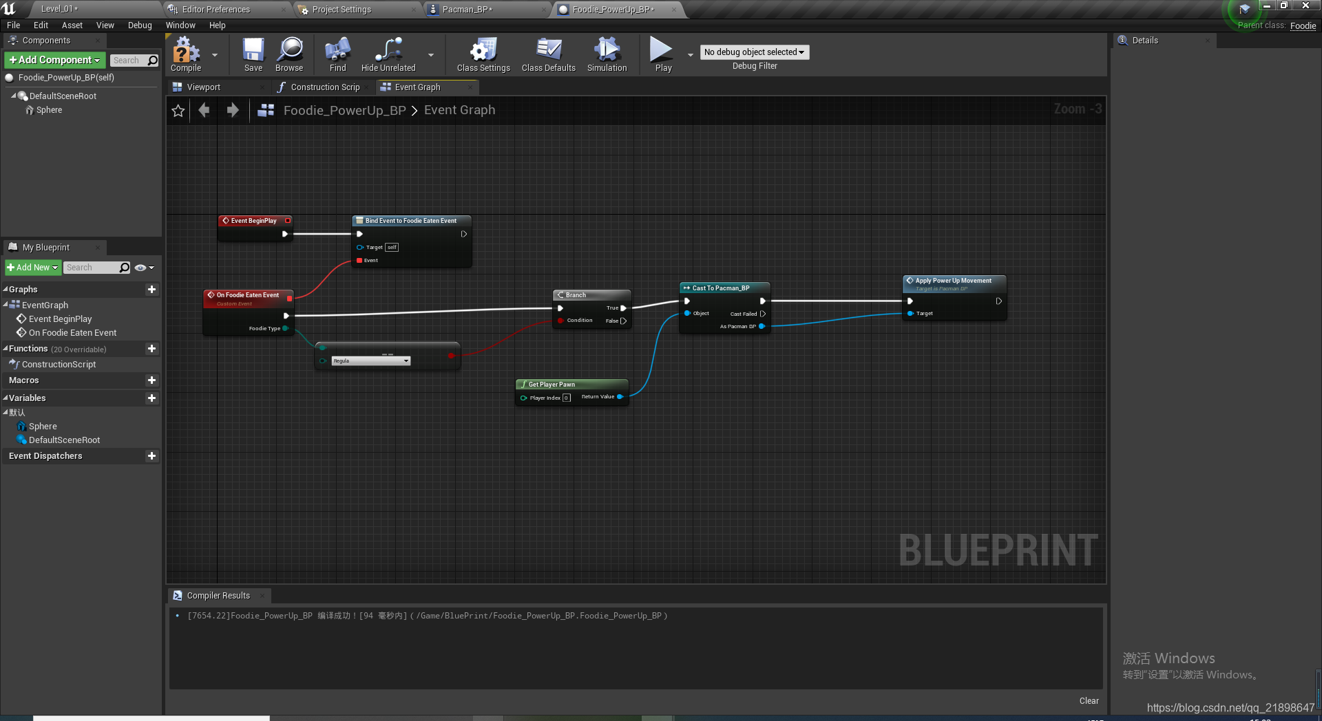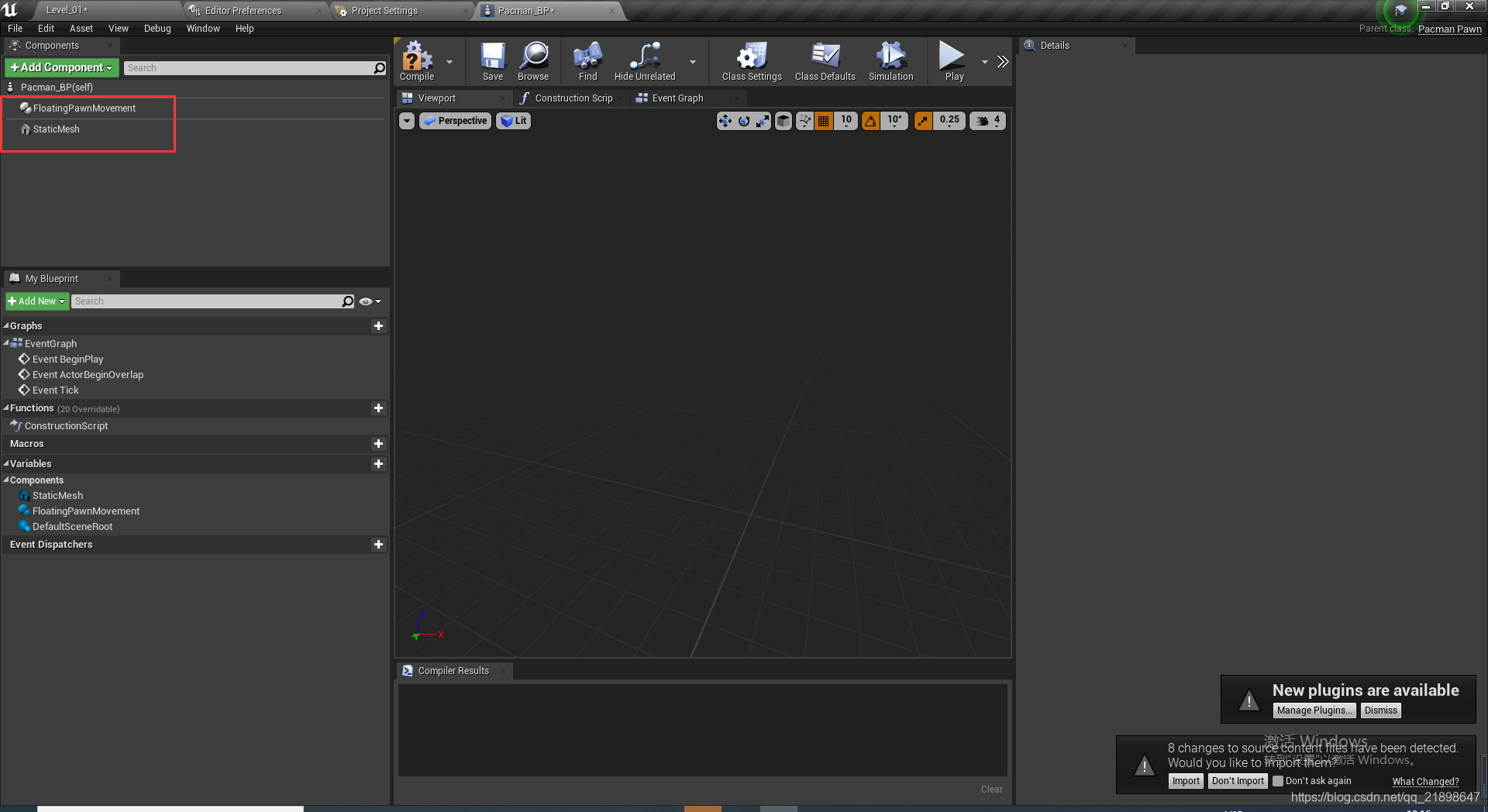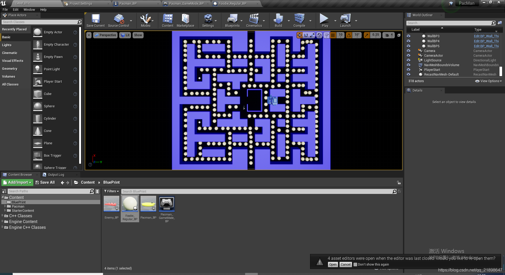 Player Controller Class设置为PacmanController,这样在C++类中就能获取到场景中Actor
