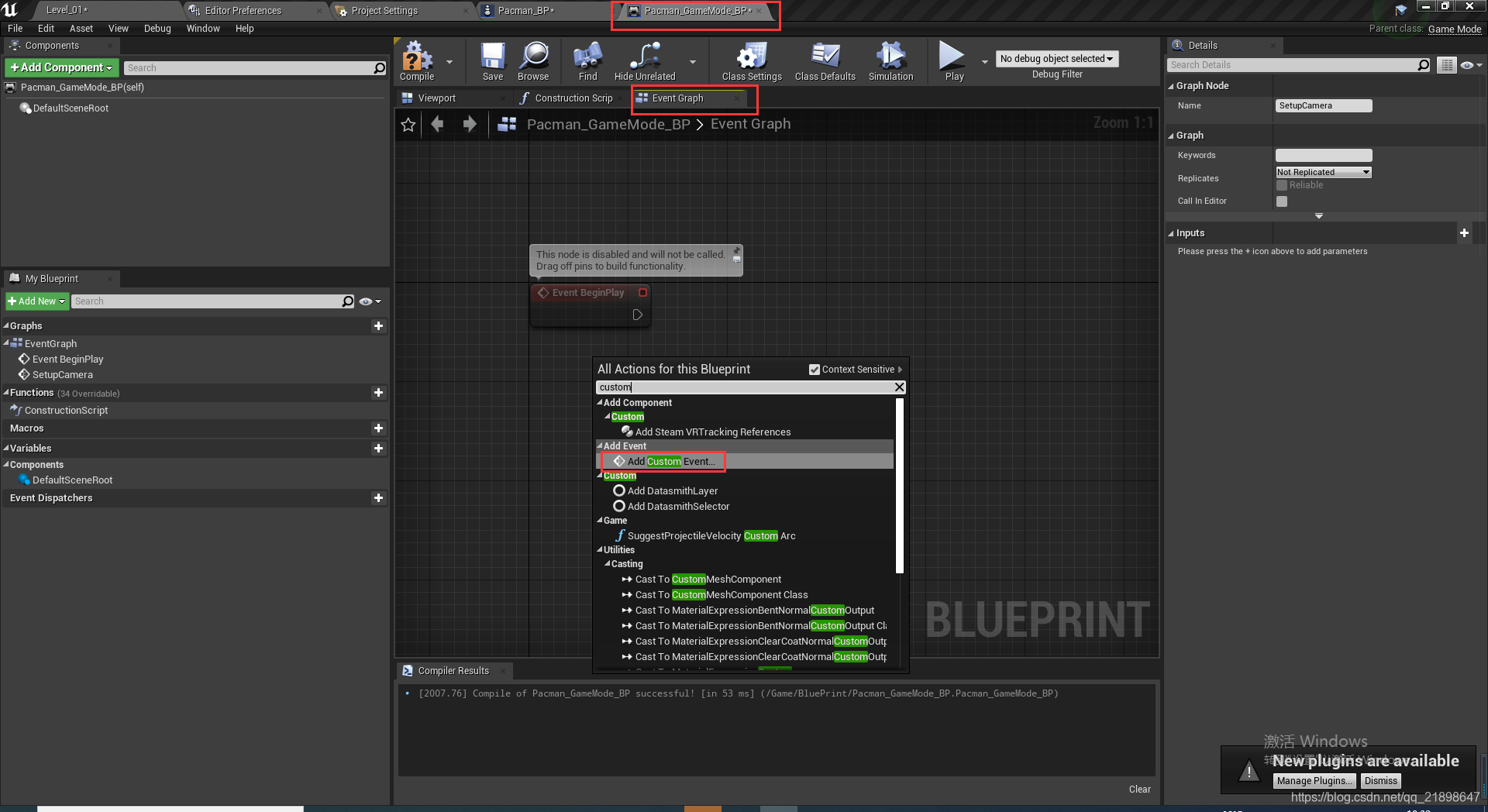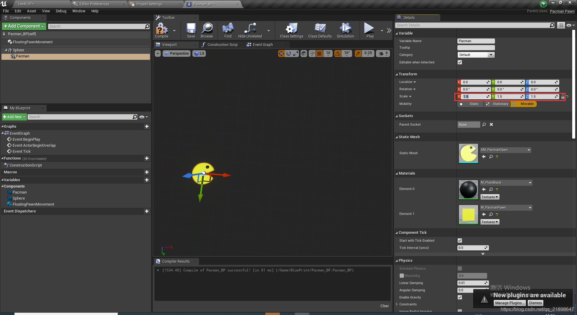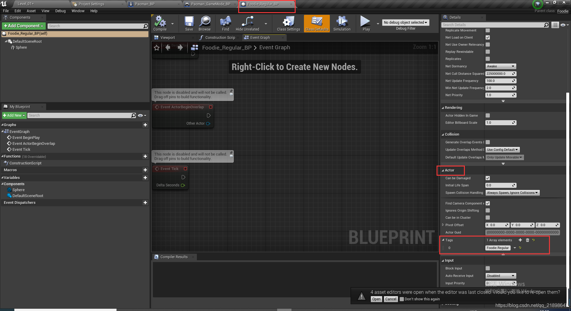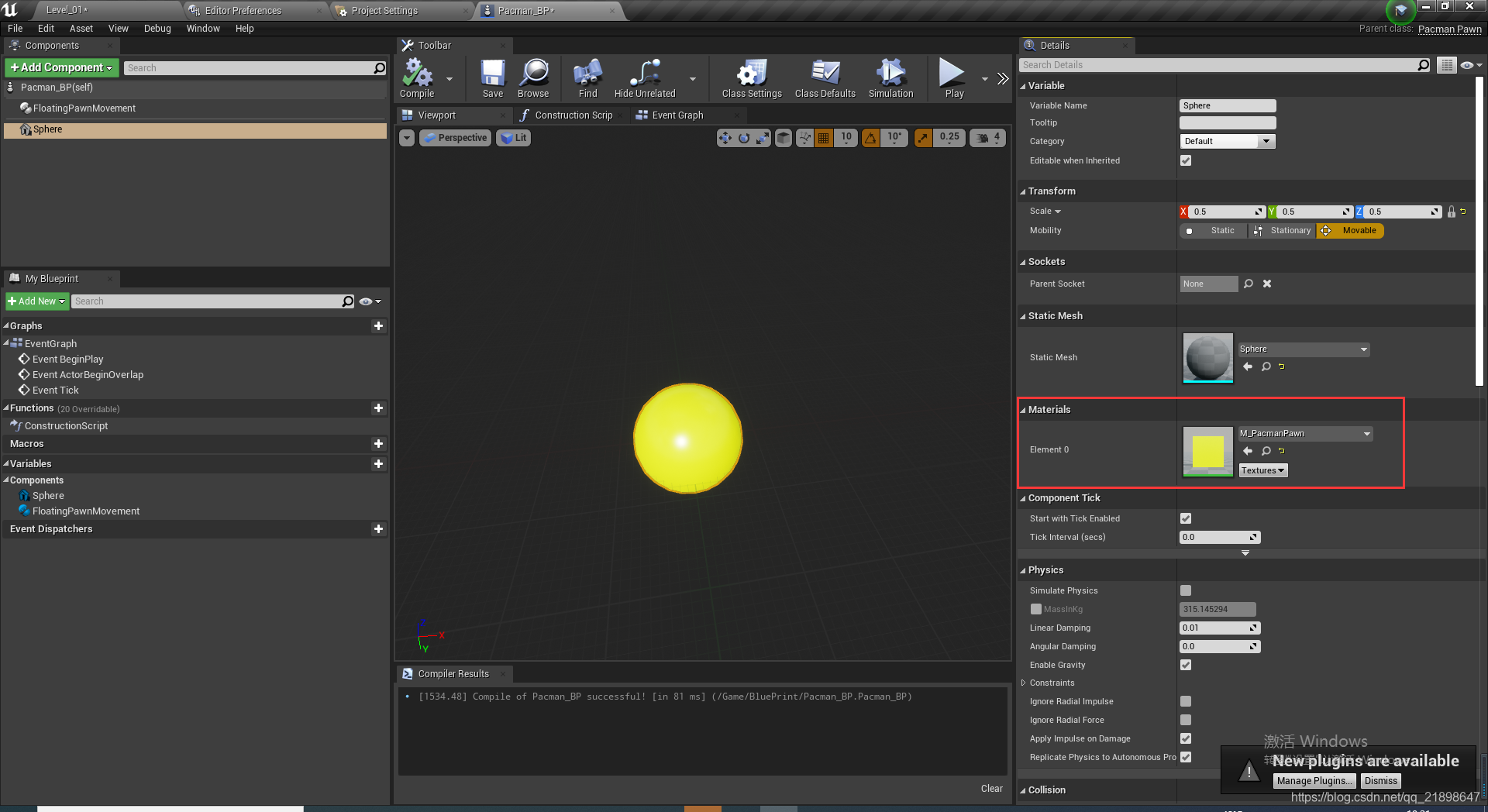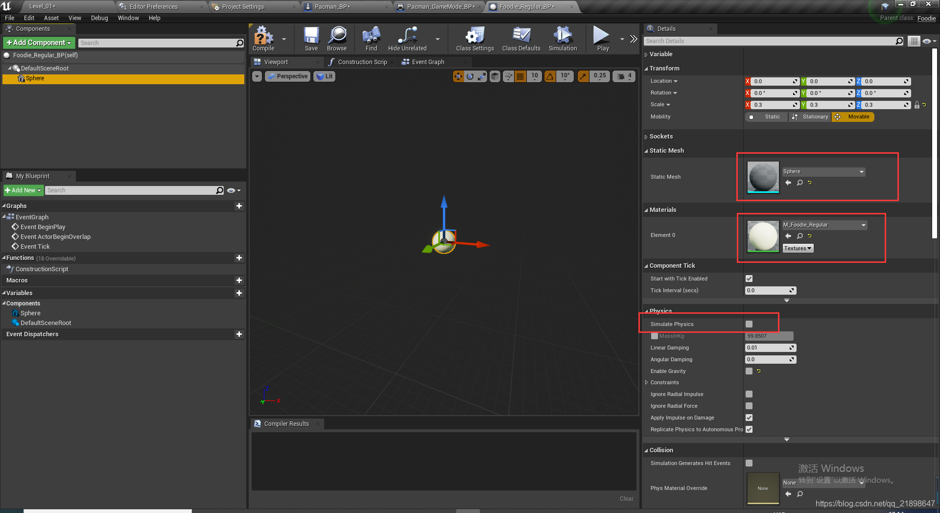 Player Controller Class设置为PacmanController,这样在C++类中就能获取到场景中Actor