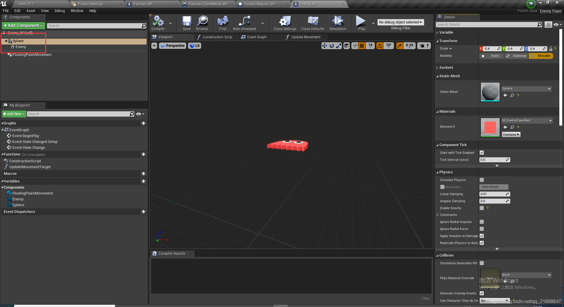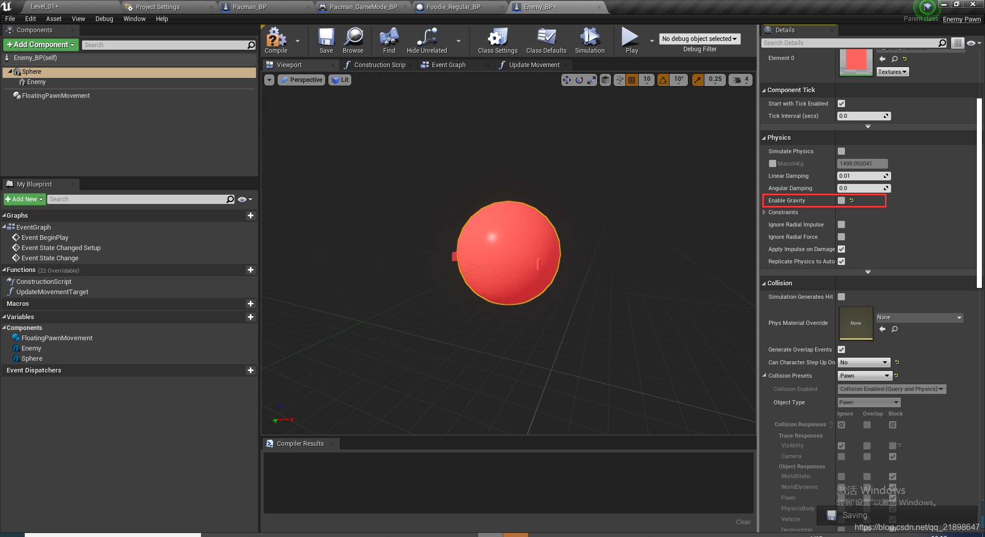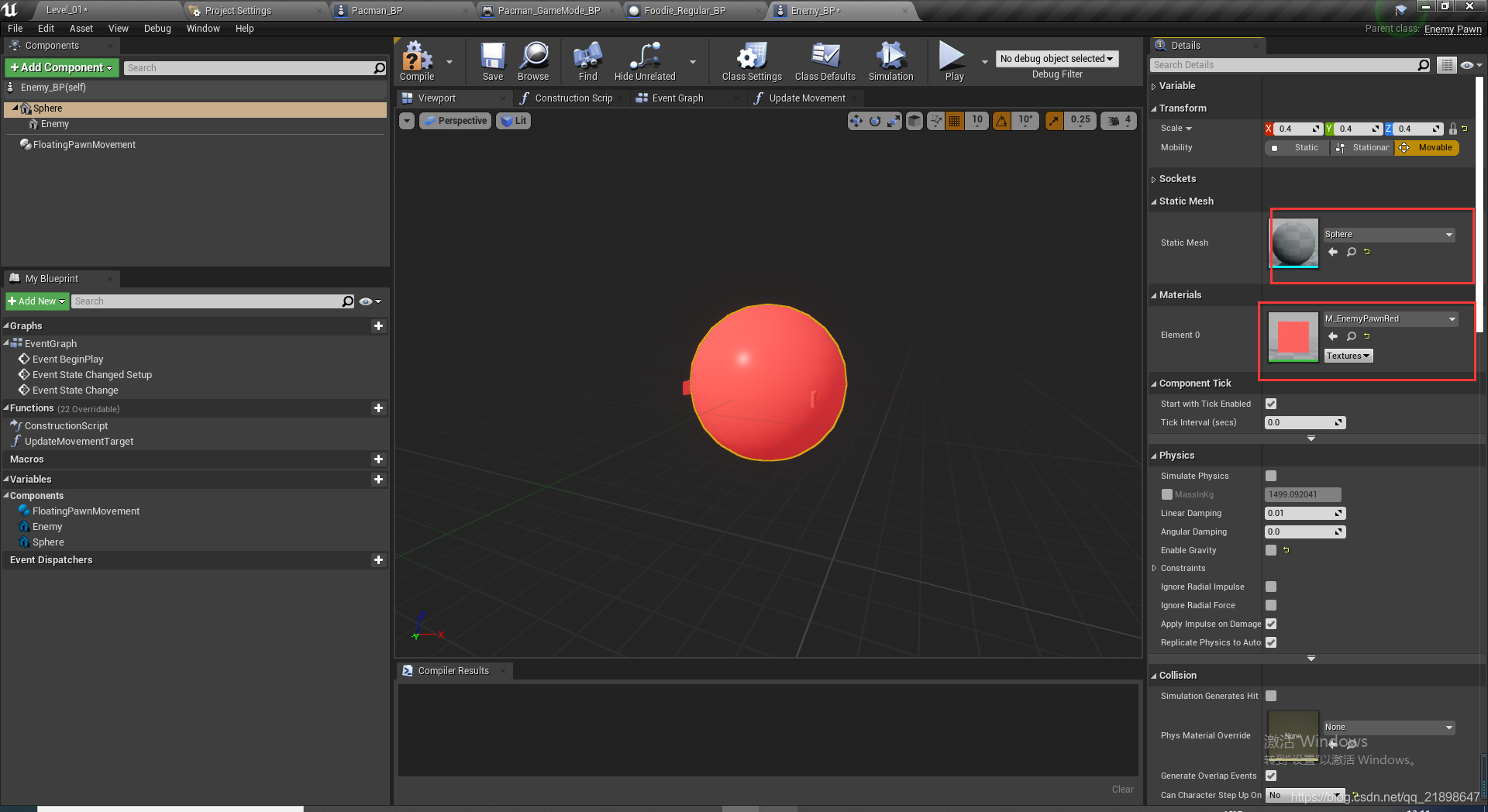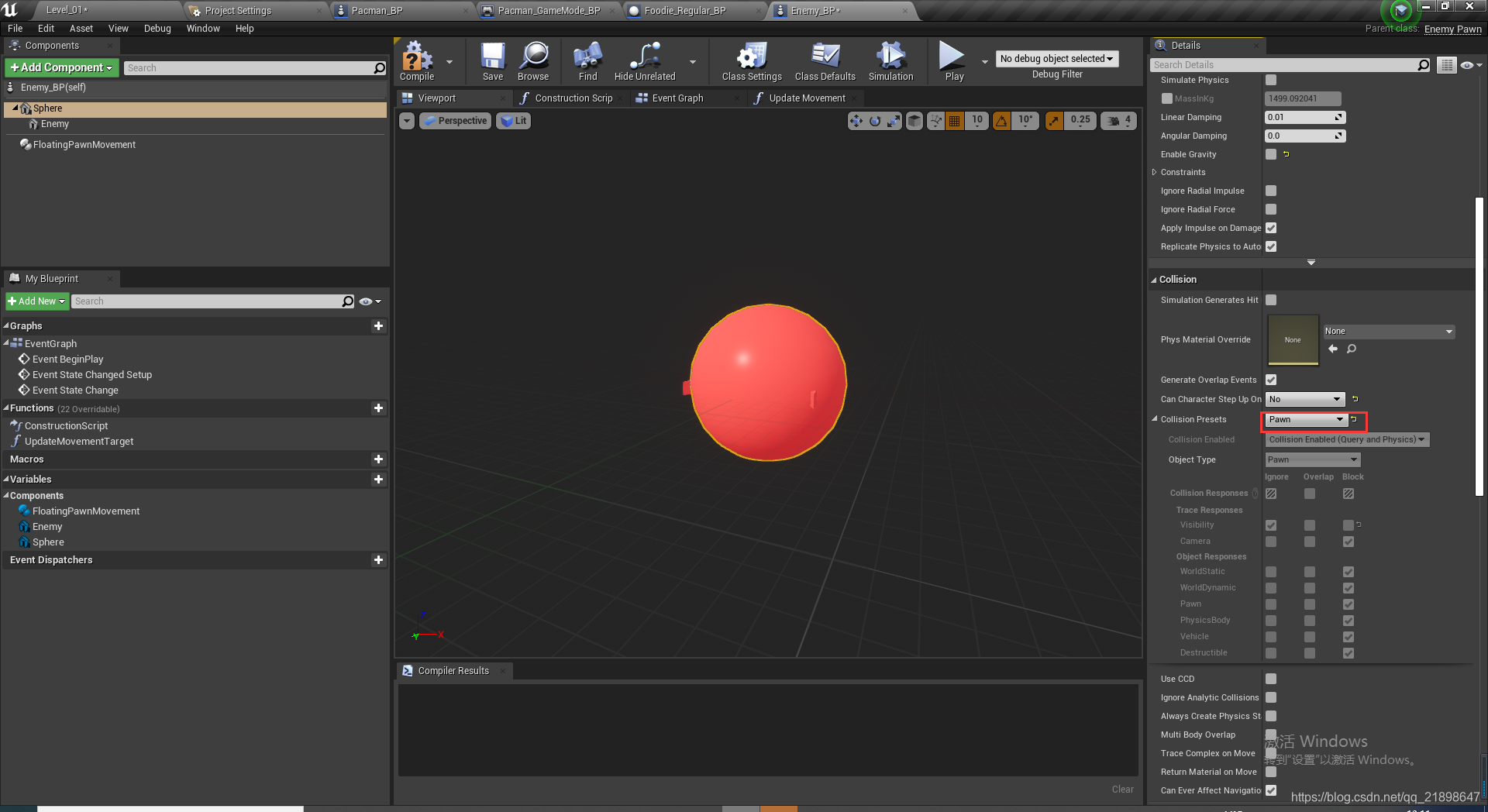 添加该类的蓝图类并添加FloatingPawnMovement以及Sphere组件