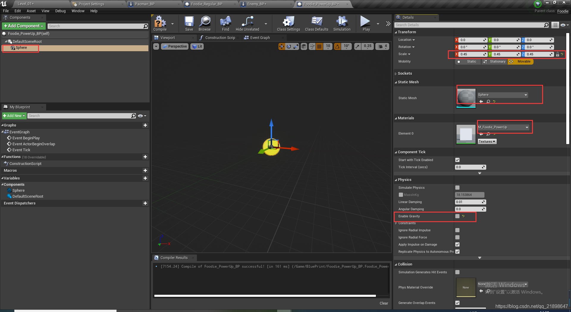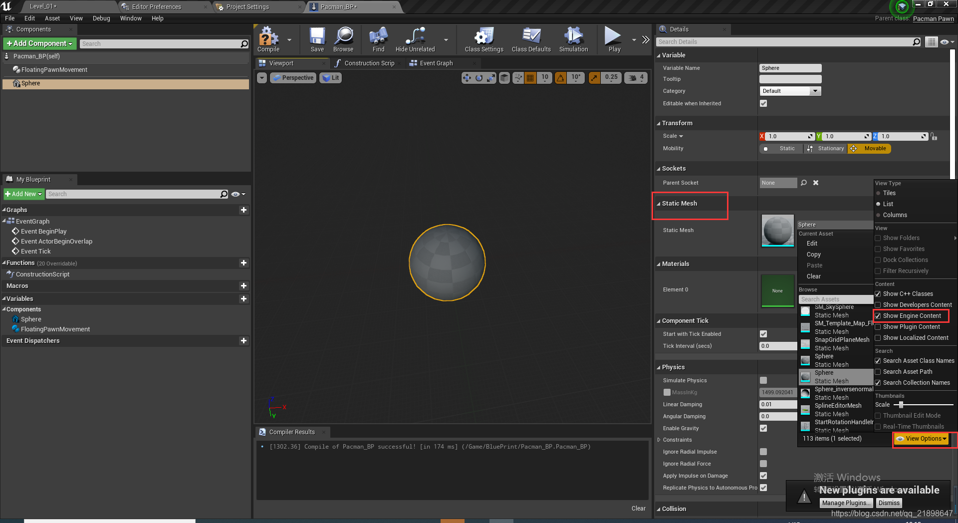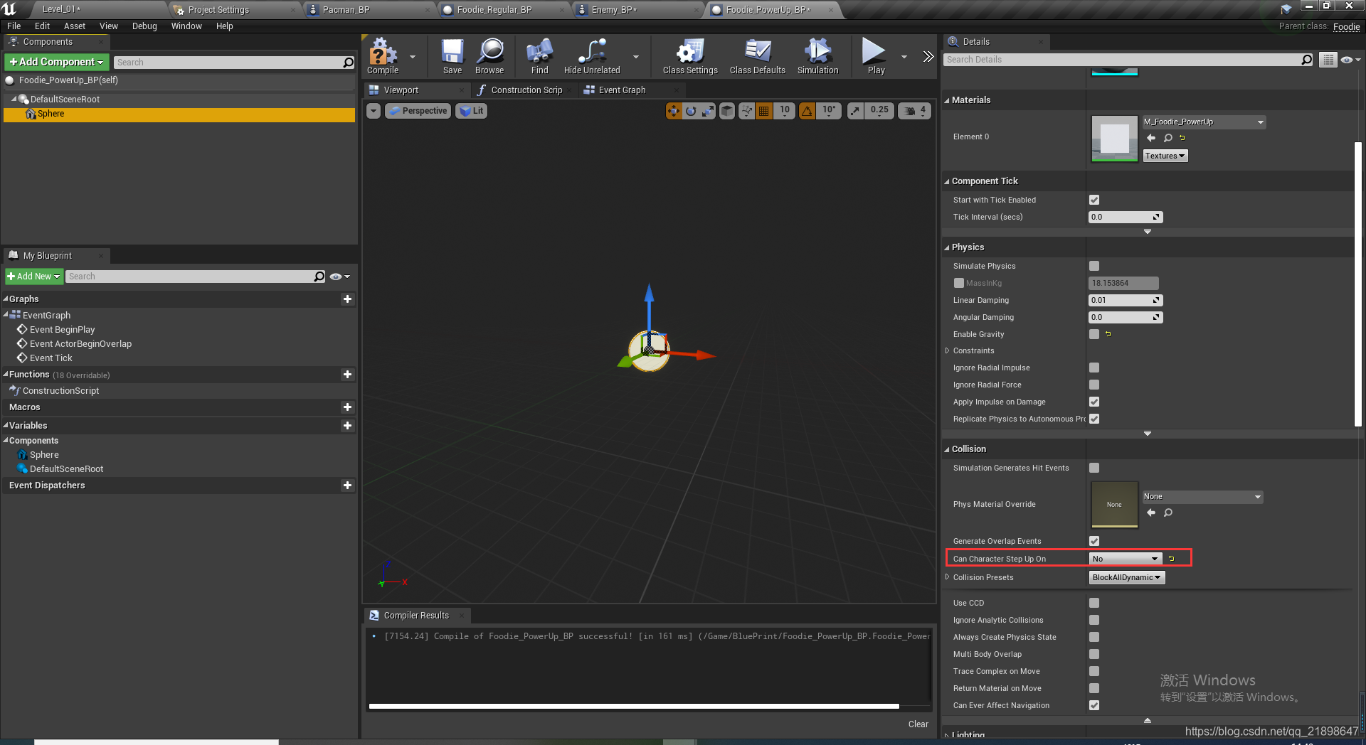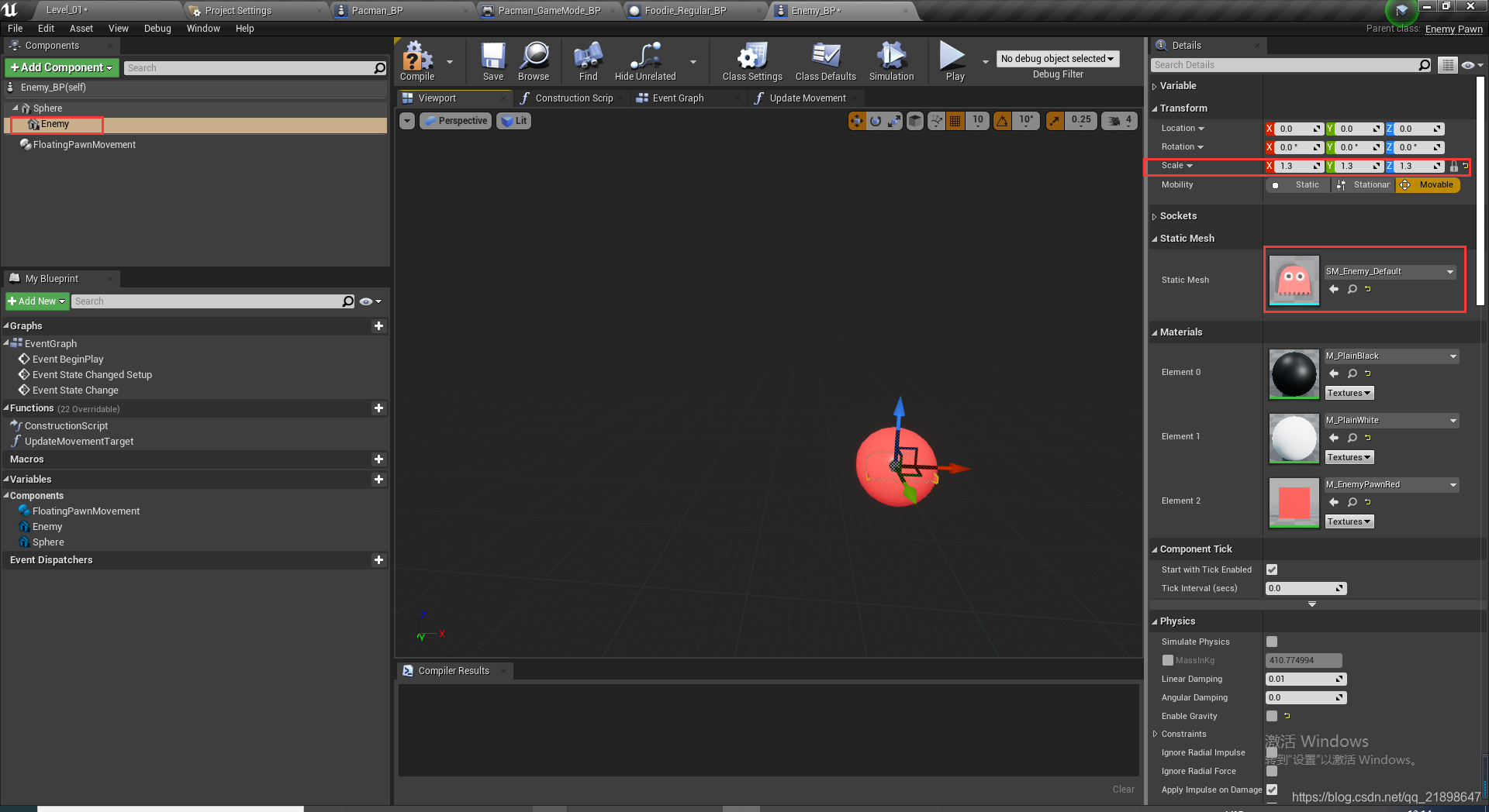 添加该类的蓝图类并添加FloatingPawnMovement以及Sphere组件