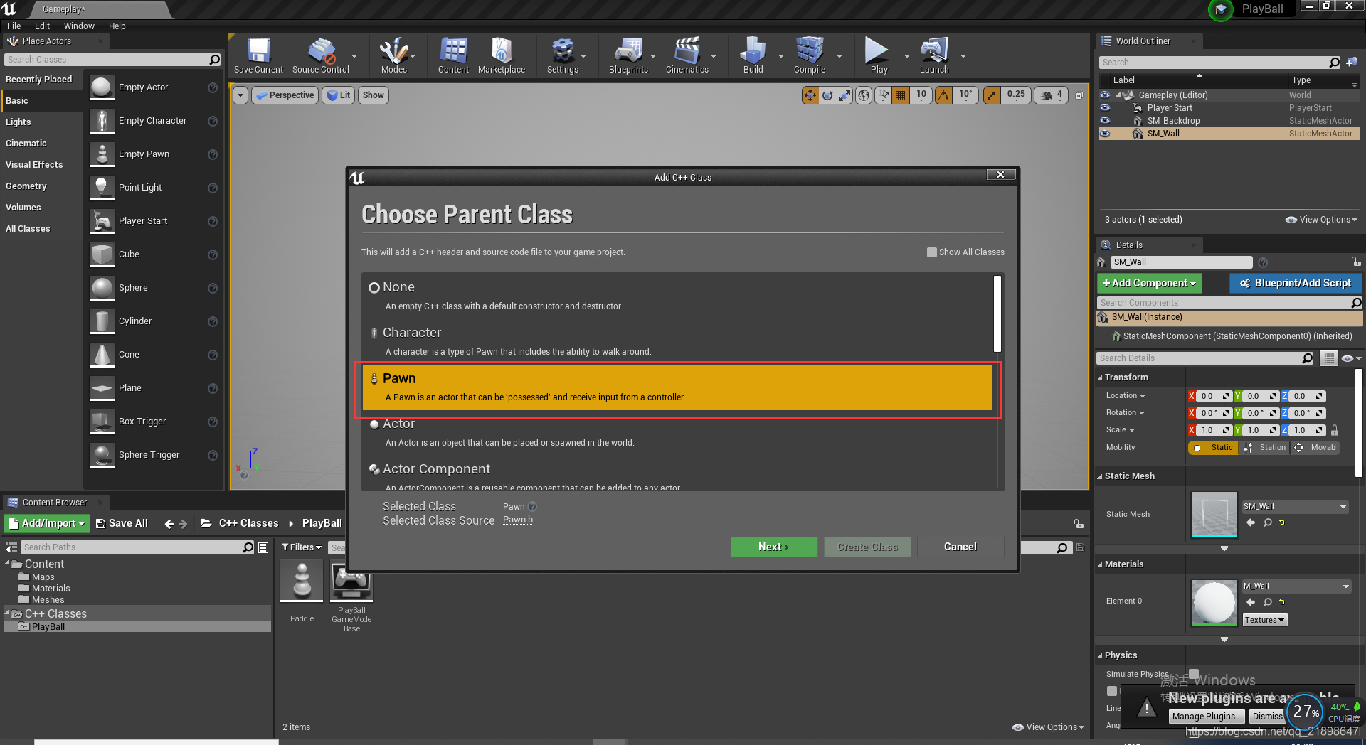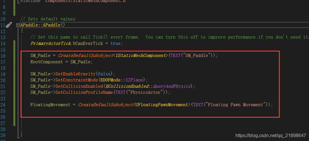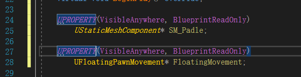 构造函数中添加UStaticMeshComponent与UFloatingPawnMovement组件