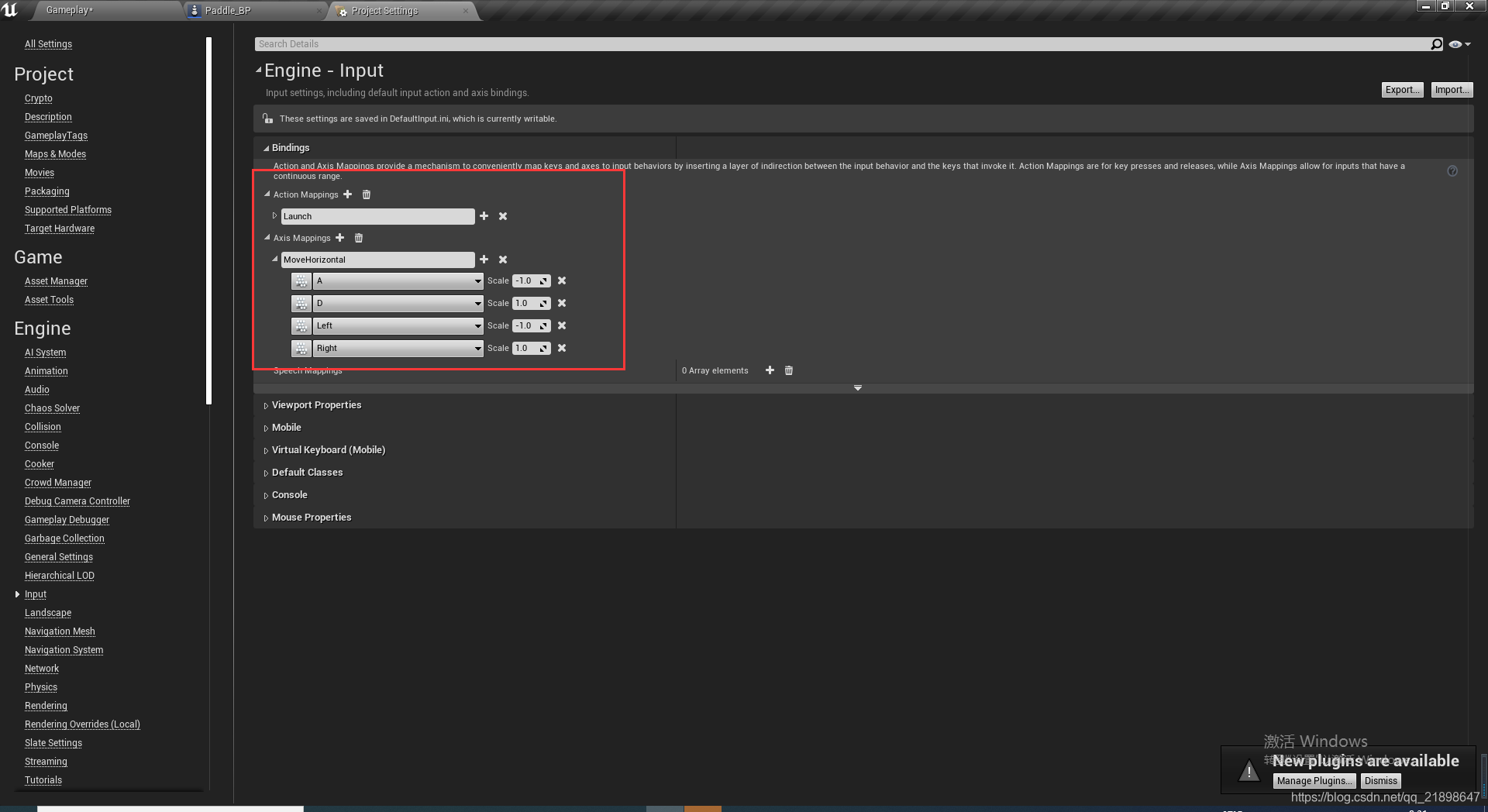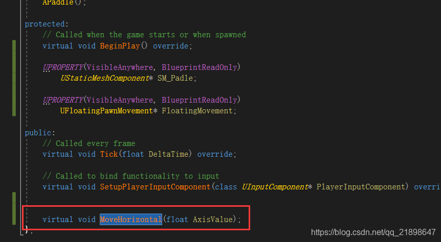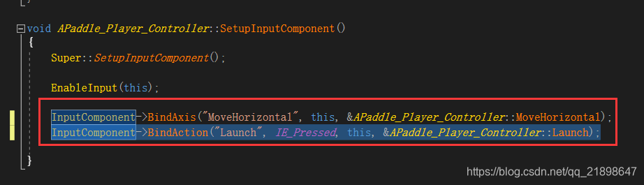 在Paddle_Player_Controller.h中绑定SetupInputComponent: