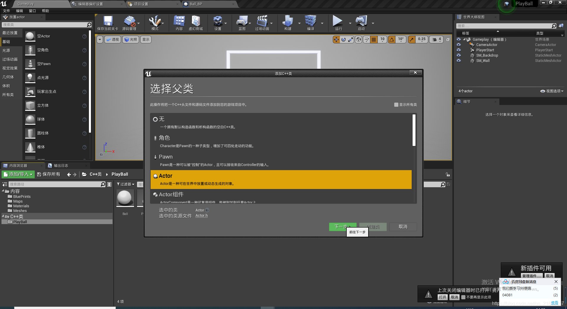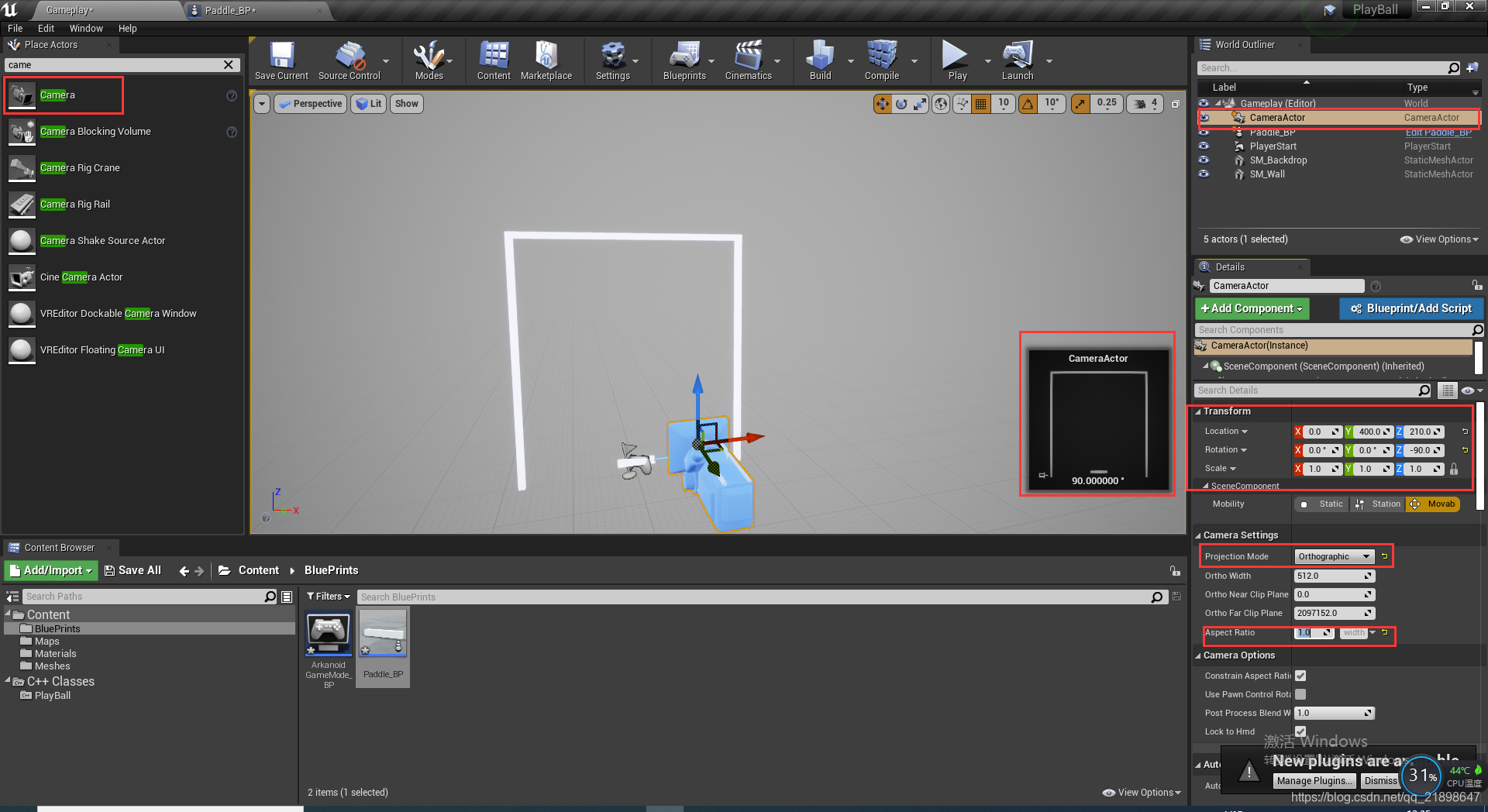 设置PhysicsActor的原因是Paddle_BP中StaticMesh的碰撞预设设置的是PhysicsActor